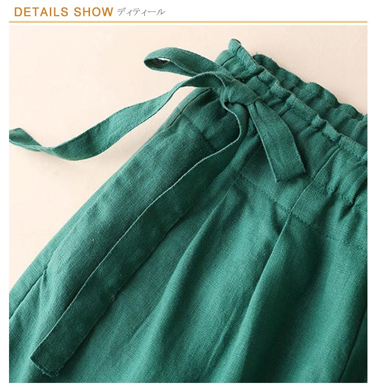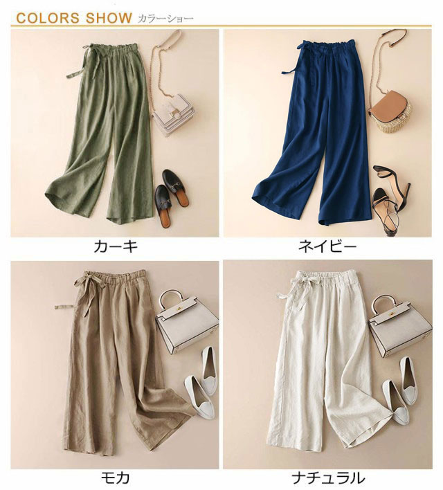 | 新色 全8色×5サイズ 綿麻素材で穿き心地抜群? 優れた通気性、肌触りも柔らかく、着心地の良さも抜群。 春夏秋にもさわやかに着られます。 調節紐とゴムウエストに合わせて、 体型に合わせてサイズを調整できるので快適に穿くことができます。 きれいなシルエットに魅せられます。 カジュアルな見た目ながらも、 無駄な装飾を施さないシンプルなデザインで様々なコーディネートにマッチします。 | |