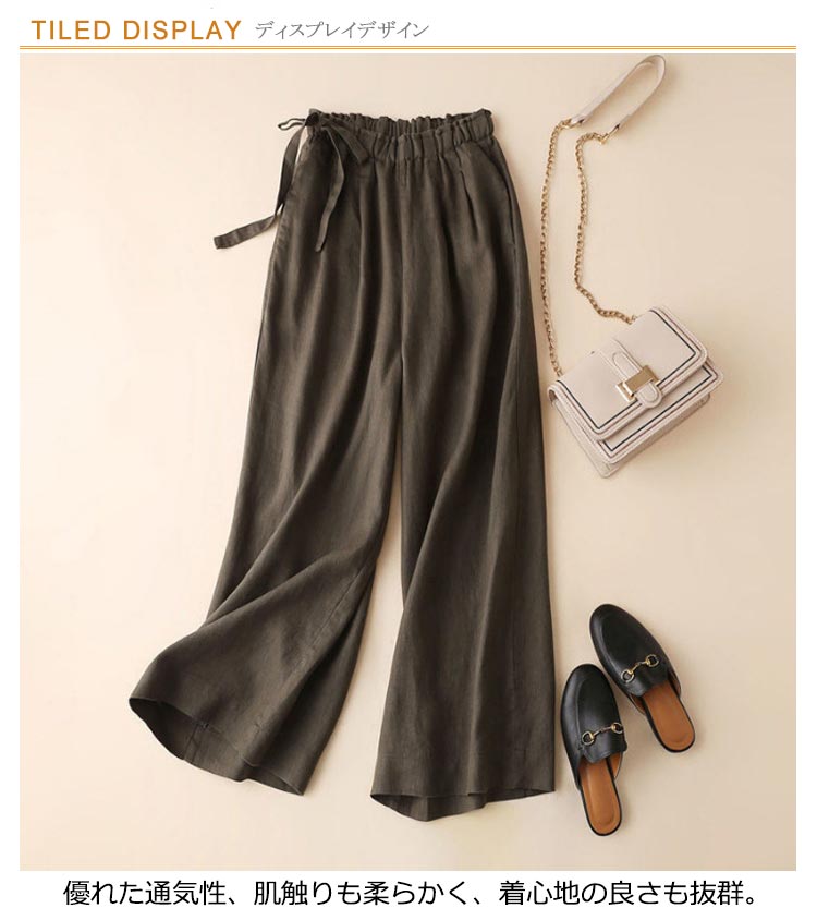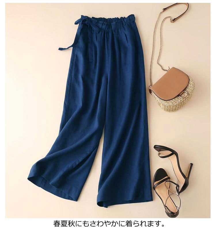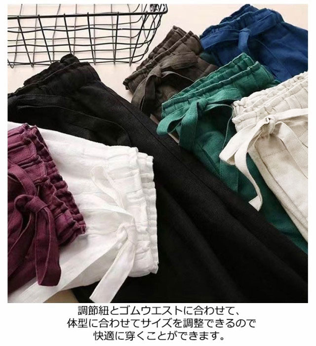 新色全8色×5サイズ綿麻素材で穿き心地抜群♪優れた通気性、肌触りも柔らかく、着心地の良さも抜群。春夏秋にもさわやかに着られます。調節紐とゴムウエストに合わせて、体型に合わせてサイズを調整できるので快適に穿くことができます。きれいなシルエットに魅せられます。カジュアルな見た目ながらも、無駄な装飾を施さないシンプルなデザインで様々なコーディネートにマッチします。