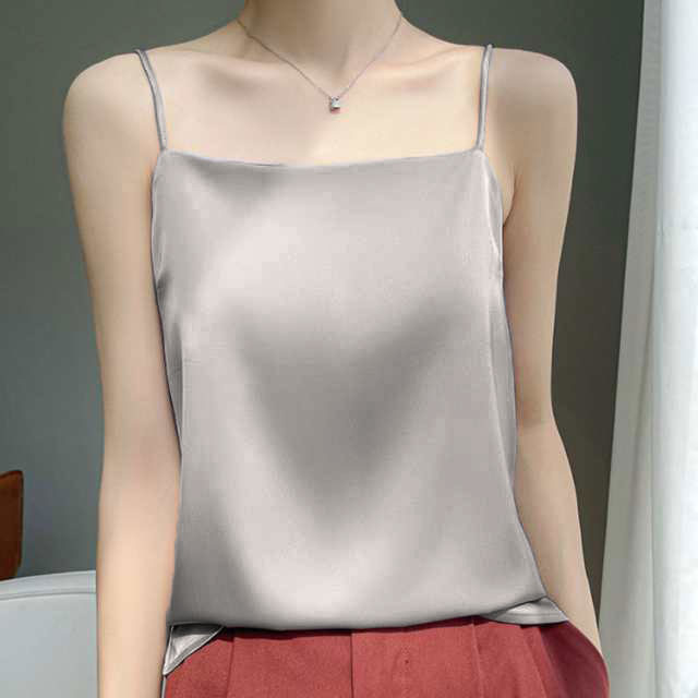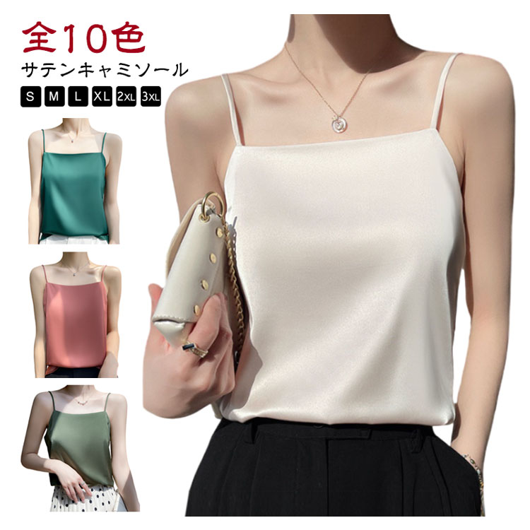 【全10色】【サテンキャミソール】【S M L XL 2XL 3XL】大人カジュアルなインナー★しっかり柔らかな光沢感のあるとろみ素材キレイめな生地感。ゆったりシルエットでボディーラインをキレイに見せてくれる♪女性らしさを強調して、色気のある大人っぽく仕上がります。滑らかな肌触りで、お肌にも心地よいやさしいシルク混キャミソールに仕上がりました。