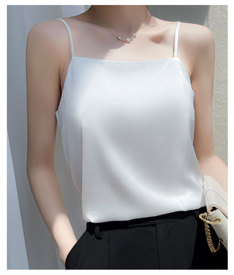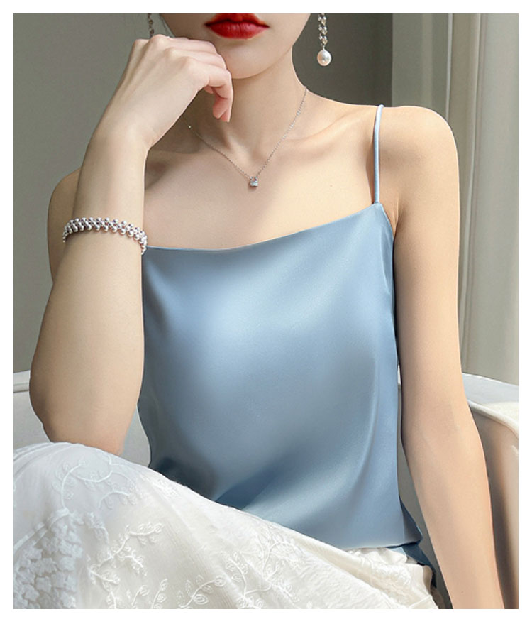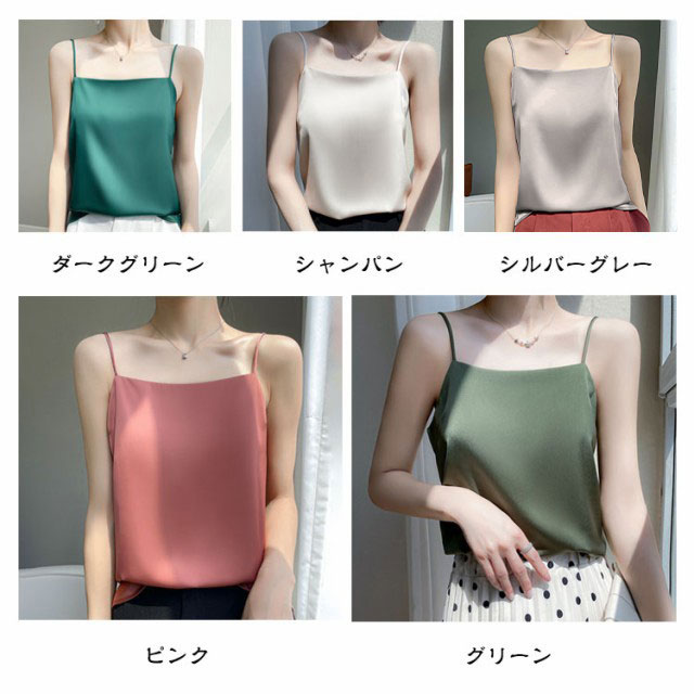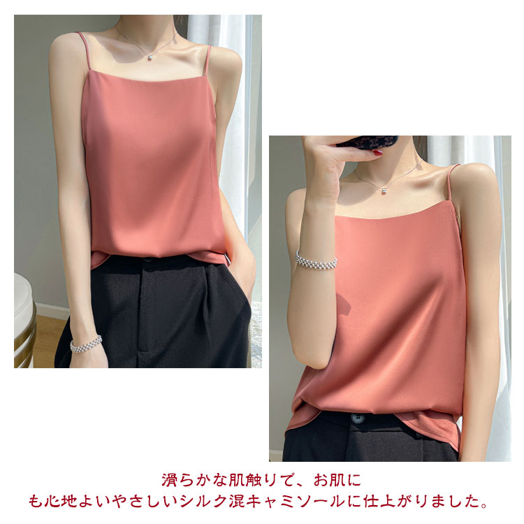 サテン キャミソール タンクキャミ 春夏 レディース シルク インナー トップス ノースリーブ 大きいサイズ サテンキャミソール ナローストラップ おしゃれ シルクタッチ 楽ちん 長め 夏物 おしゃれ ブラウス 袖なし