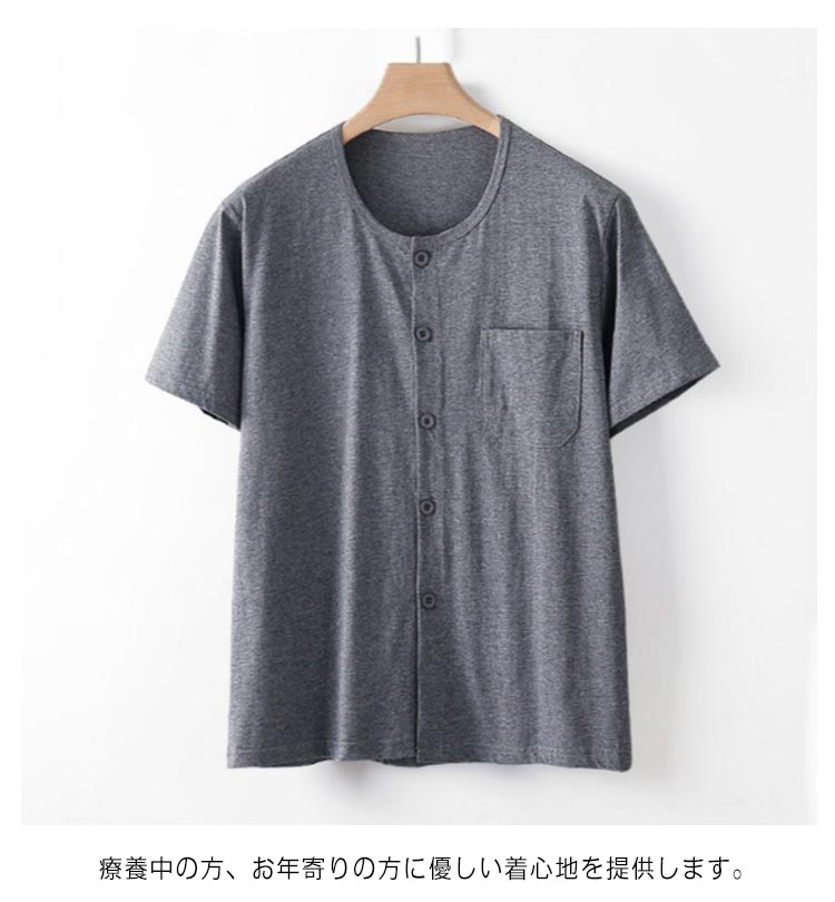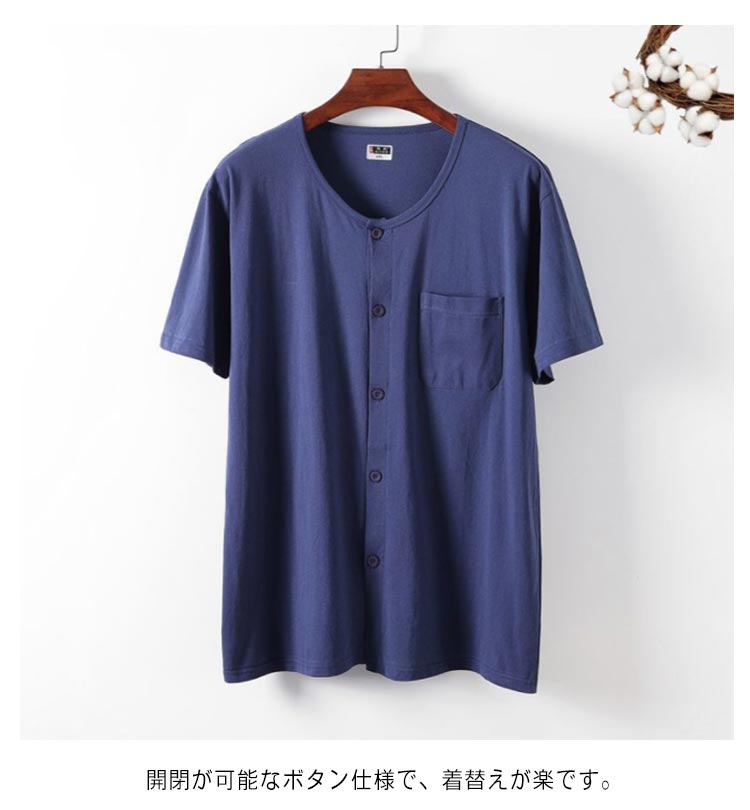 介護 シャツ 紳士 前開き 半袖 快適 介護用 トップス 前開きTシャツ インナーシャツ 無地 着脱やすい ルームウェア 下着 肌着 メンズ 入院 手術 部屋着 男性用 Tシャツ 寝巻き 介護服 介護肌着 介護ねまき 介護寝巻き 入院着 前あき肌着 XL-5XL