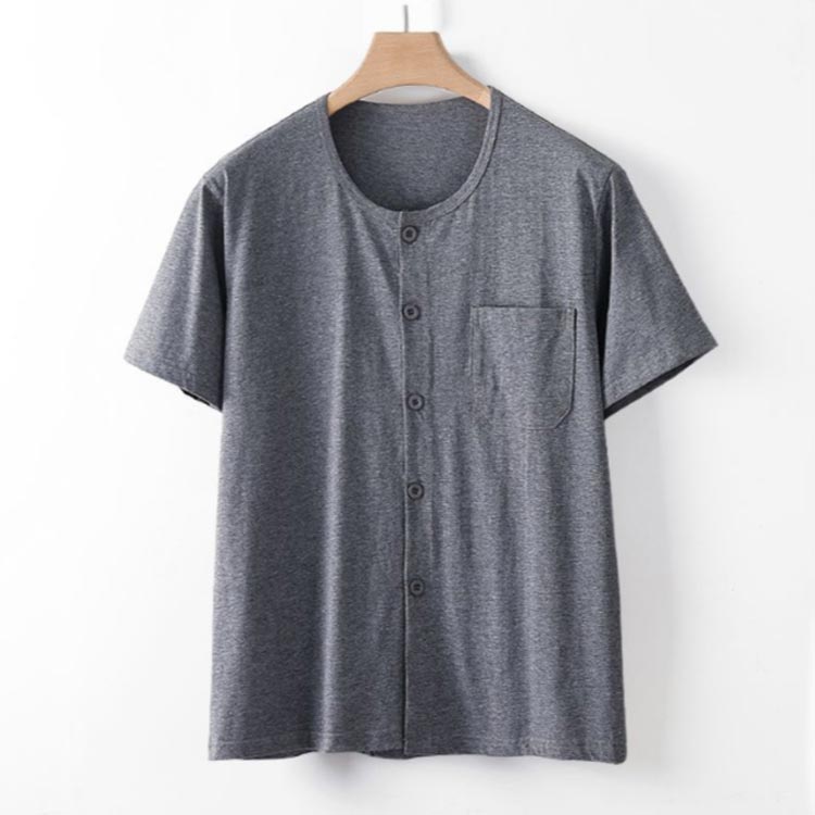 夏用、着脱やすい前開きの介護半袖Tシャツです。通気性の良い生地でサラリと快適な着心地。開閉が可能なボタン仕様で、着替えが楽です。療養中の方、お年寄りの方に優しい着心地を提供します。見た目もオシャレでお部屋着にも最適なデザインです。薄くて軽い素材を使用しているため、アウトドアにもおすすめです。