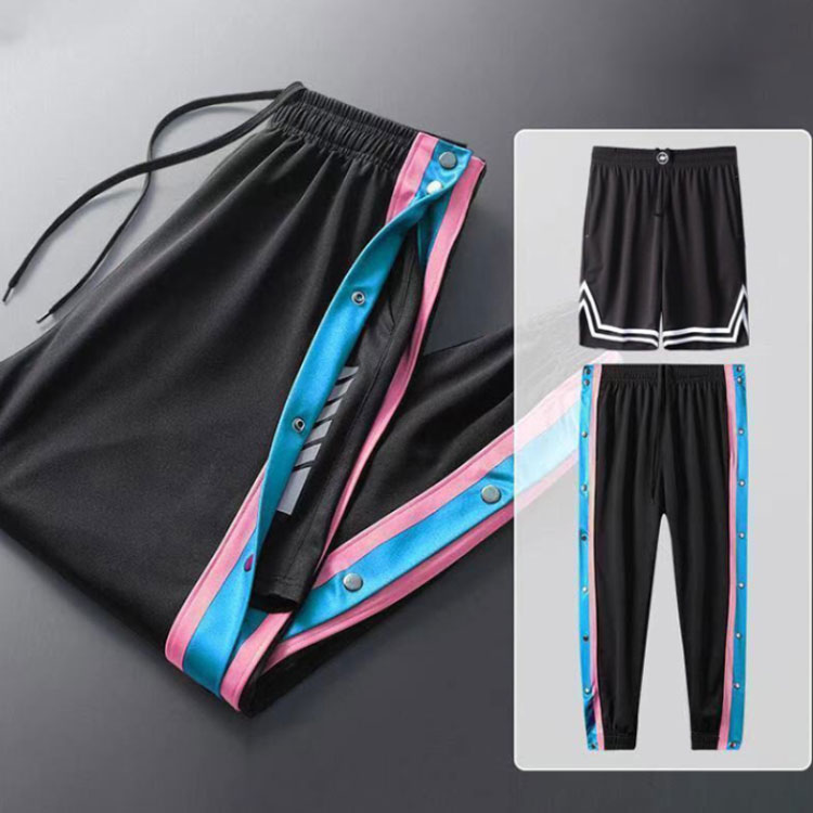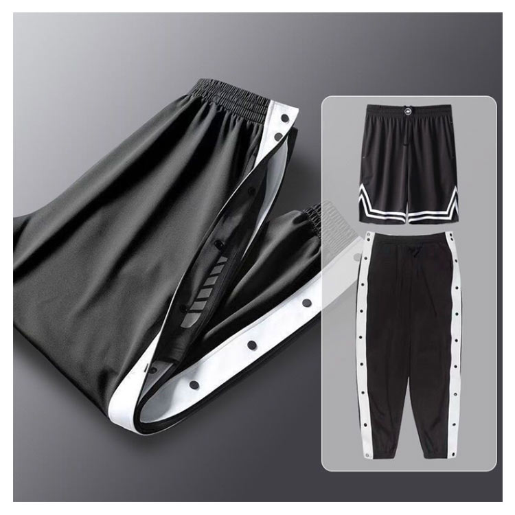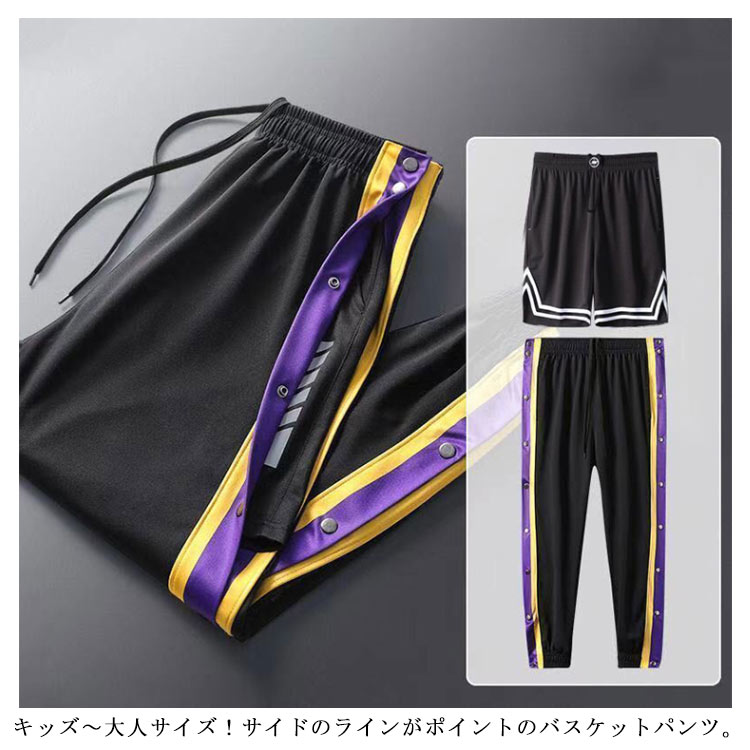 2点セット!バスケパンツ バスケットパンツ スナップボタン バスケットボールパンツ キッズ ジュニア 大人 メンズ レディース バスパン 裾ボタン サイドボタン サイドライン 長ズボン ロングパンツ ジャージ 下 男の子 女の子 男性 女性
