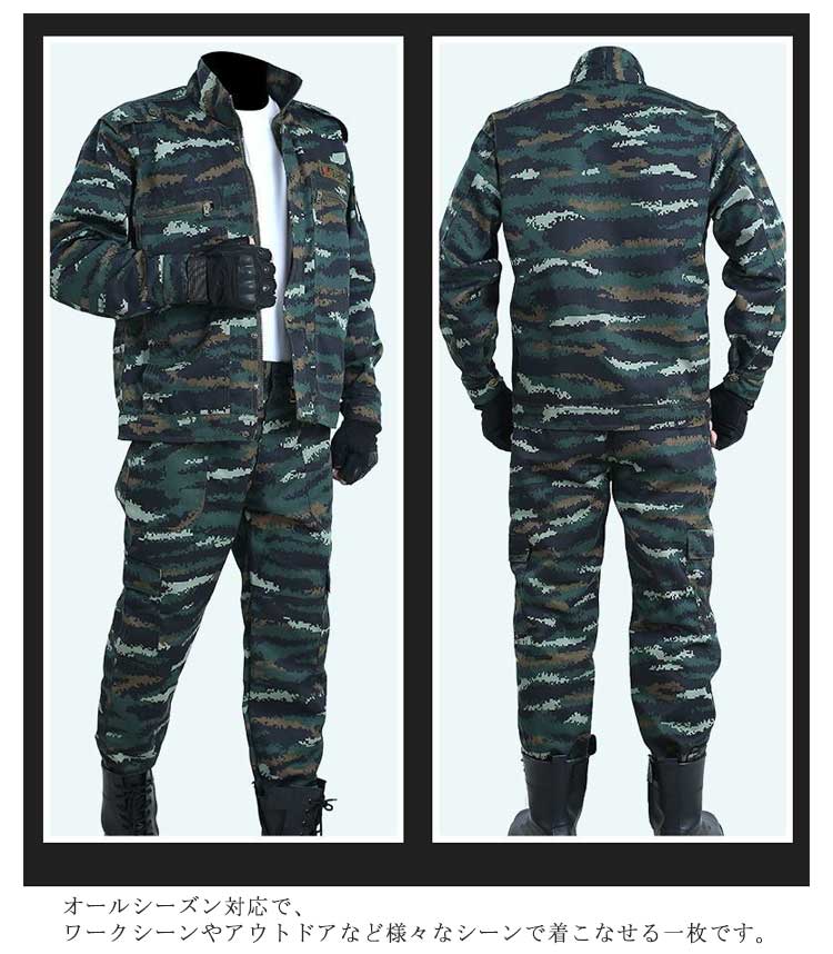 作業服 迷彩柄 メンズ 上下セット ジャケット ロングパンツ 2点セット ミリタリー カーゴパンツ 制電 ワークウェア 作業着 丈夫 耐磨耗 ユニフォーム アメカジ おしゃれ マルチポケット スリムフィット カジュアル お仕事 薄手 通気性 男女兼用 送料無料 S-4XL