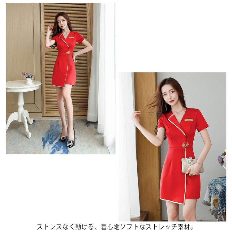 一枚で主役になるワンピーススタイル。お客様をお迎えするスタッフをエレガントに演出するユニフォーム。快適さもおしゃれ見えも!どちらか一方なんて選べない。全てがパーフェクトな一着を選ぶならこれしか無い!細部のディテールまでこだわった究極の一枚。ストレスなく動ける、着心地ソフトなストレッチ素材。配色パイピングのデザインで上品に大人の女性も演出します。美しいシルエットにこだわり、心地良い着心地を追求。