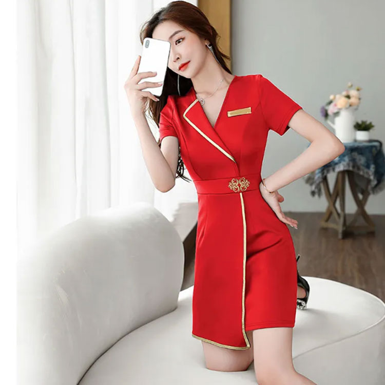 | 一枚で主役になるワンピーススタイル。お客様をお迎えするスタッフをエレガントに演出するユニフォーム。 快適さもおしゃれ見えも! どちらか一方なんて選べない。全てがパーフェクトな一着を選ぶならこれしか無い! 細部のディテールまでこだわった究極の一枚。 ストレスなく動ける、着心地ソフトなストレッチ素材。 配色パイピングのデザインで上品に大人の女性も演出します。 美しいシルエットにこだわり、心地良い着心地を追求。 | |