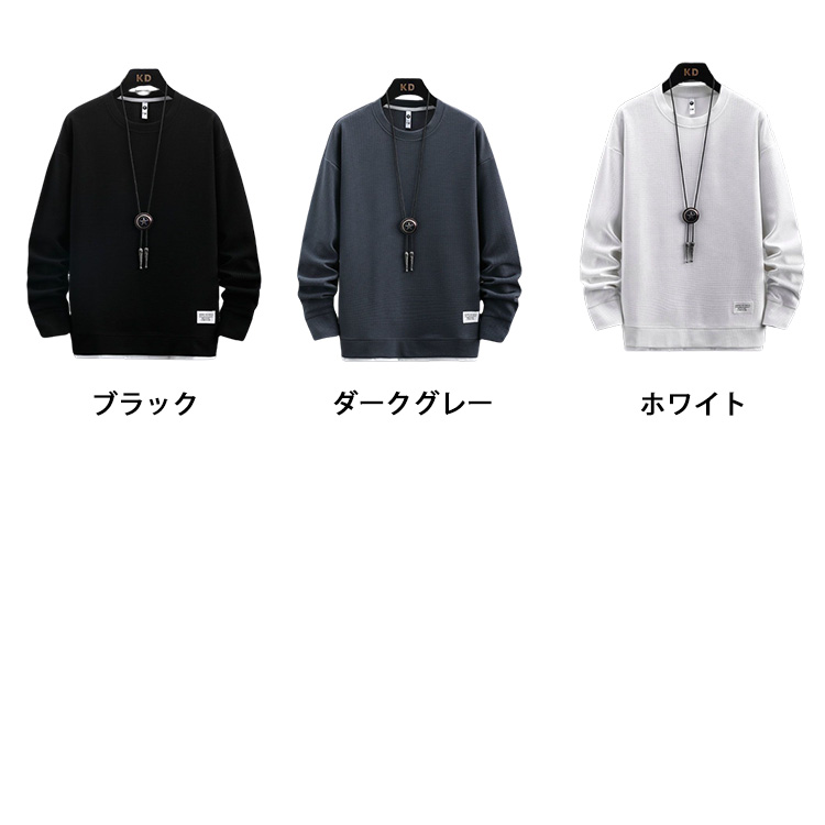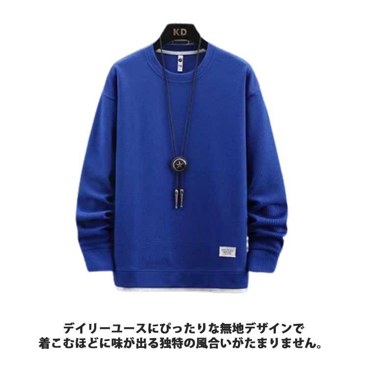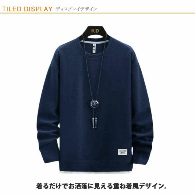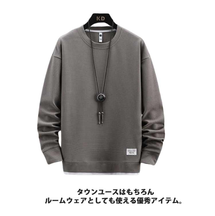 送料無料 ワッフル ロンT メンズ プルオーバー 長袖 tシャツ 長袖Tシャツ 無地 tシャツ カジュアル クルーネック ルームウェア パジャマ 部屋着 重ね着風 Tシャツ ロングTシャツ ティーシャツ レイヤード風 トップス おしゃれ 薄手 トレーナー 春 春服 秋 秋服