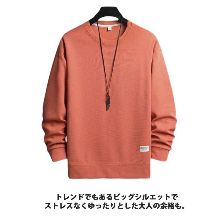 ワッフル素材を使用したプルオーバースウェット。着るだけでお洒落に見える重ね着風デザイン。デイリーユースにぴったりな無地デザインで着こむほどに味が出る独特の風合いがたまりません。トレンドでもあるビッグシルエットでストレスなくゆったりとした大人の余裕も。タウンユースはもちろんルームウェアとしても使える優秀アイテム。