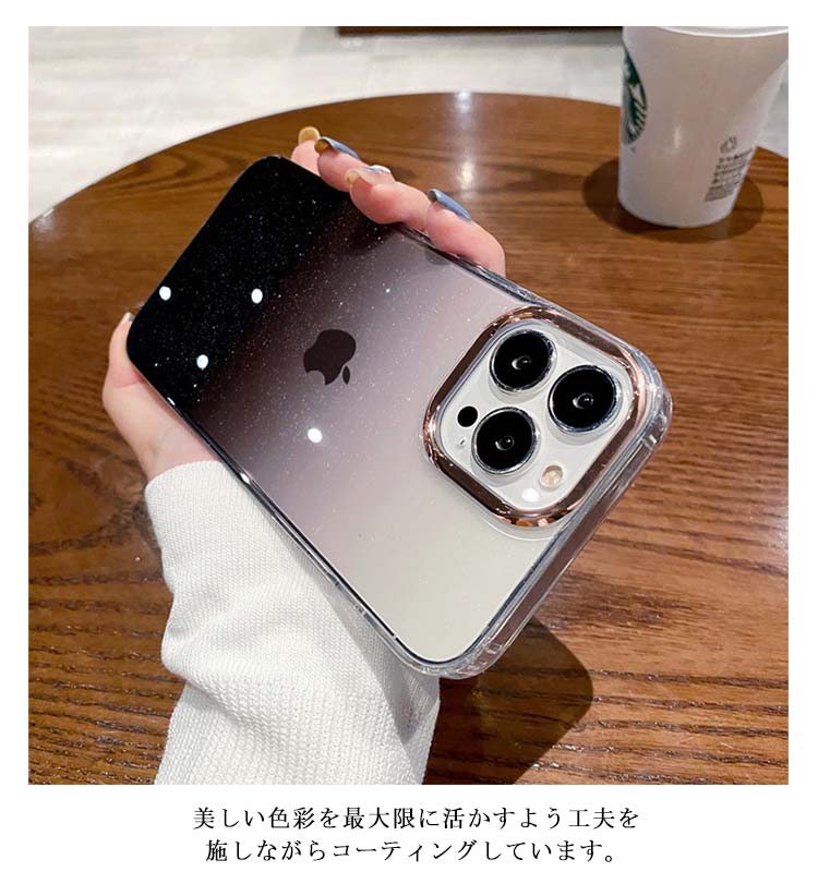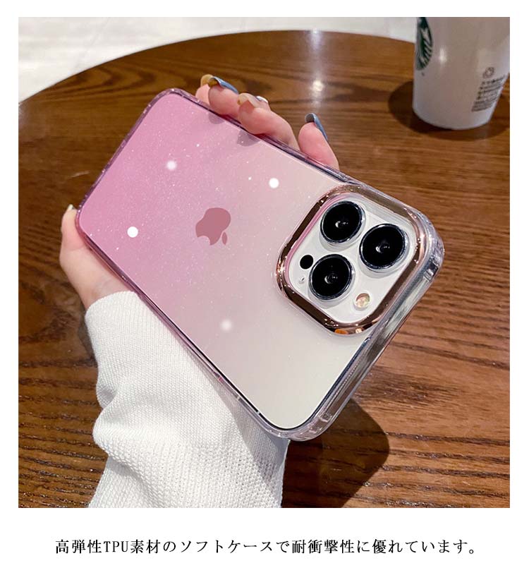 透明感があって綺麗!グラデーションカラーケース• 美しい色彩を最大限に活かすよう工夫を施しながらコーティングしています。• 洗練されたスリム設計で手になじみやすくフィットします。• 高弾性TPU素材のソフトケースで耐衝撃性に優れています。• 高級感のあるデザインに仕上げました、手触りも良い♪• ソフトな素材を使用、ケースへの装着も簡単。• ケースをつけたまま操作&充電可能。• おしゃれ見た目でプチギフトにもおすすめ♪
