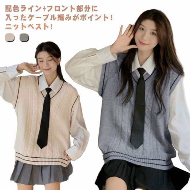 スクールベスト ニットベスト レディース 制服 セーター ライン入り Vネック 学生服 スクールセーター ノースリーブ スクール ニット ゆったり 大きいサイズ 春 秋 冬 女子 中学生 高校生 学生服 通学 JK制服 無地 可愛い ベージュ グレー 送料無料