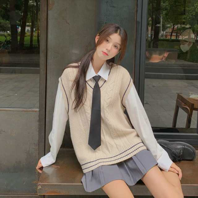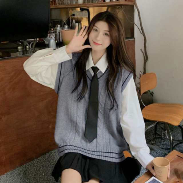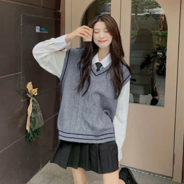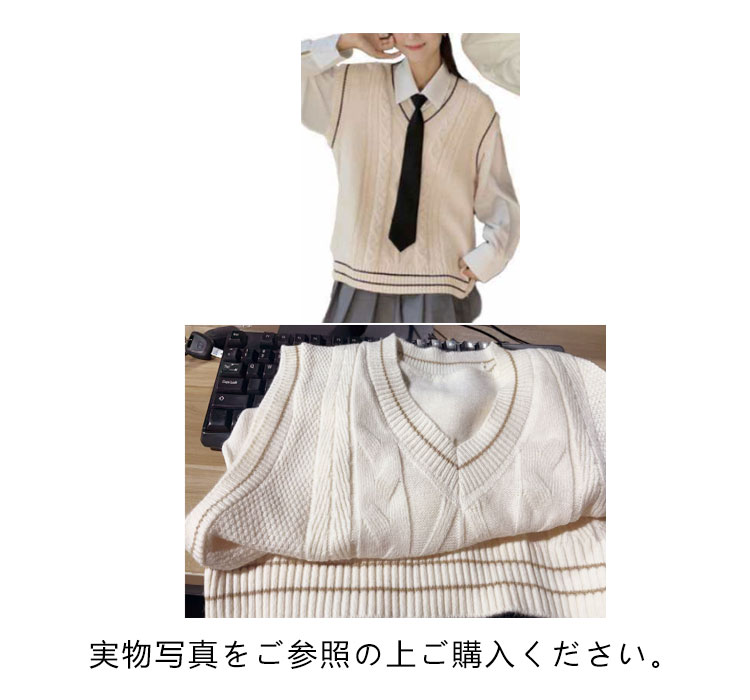 | 配色ライン+フロント部分に入ったケーブル編みがポイント。ニットベスト。 大きすぎるオーバーシルエットは着た時のそのサイズ感?動いた時に揺れるシルエットが◎ 襟がきれいに見える計算されたライン入りVネックデザイン。 長袖スクールシャツの組み合わせて、シャツのカラーを変えるだけでイメージが変わります。 年齢を選ばず、学生?女子高生の制服にも、普段使いにもお使いいただけます ! | |