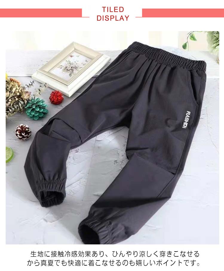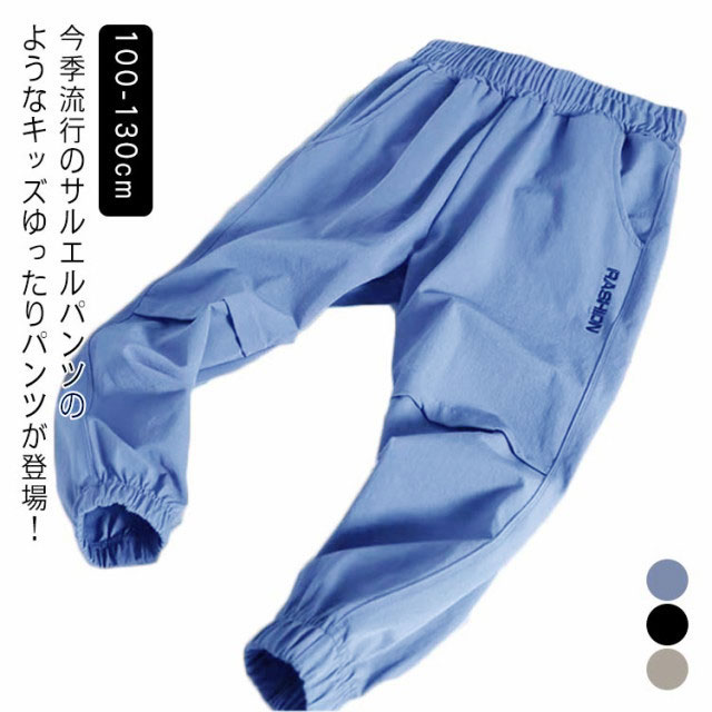 | 生地に接触冷感効果あり、ひんやり涼しく穿きこなせるから真夏でも快適に着こなせるのも嬉しいポイントです。 今季流行のサルエルパンツのようなキッズゆったりパンツが登場! ウェストと裾が柔らかいゴムで締まって、長時間着用しても窮屈さなどは一切なく楽です。 薄手のタイプで、真夏の日焼け対策や蚊対策などにもぜひお薦めな1本です。 | |