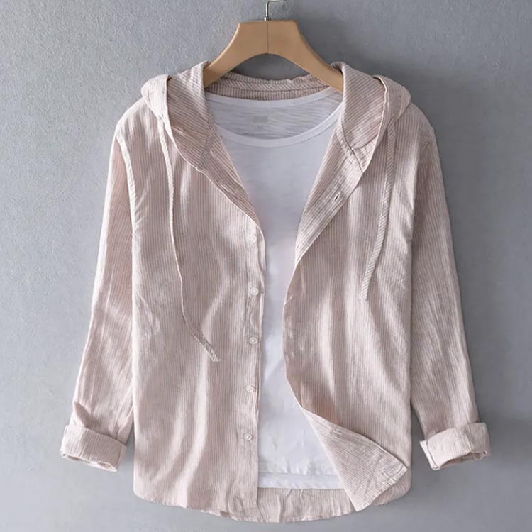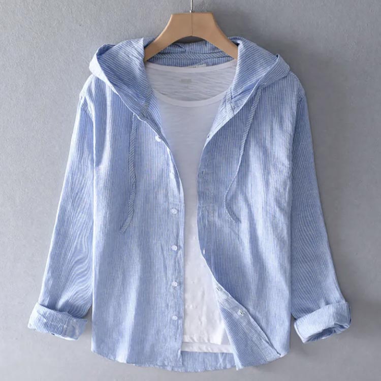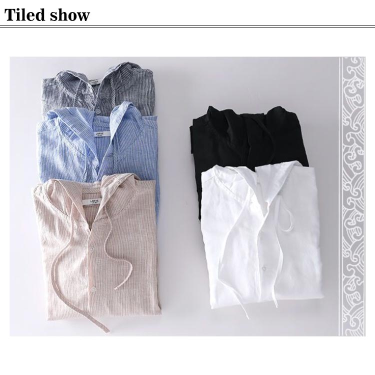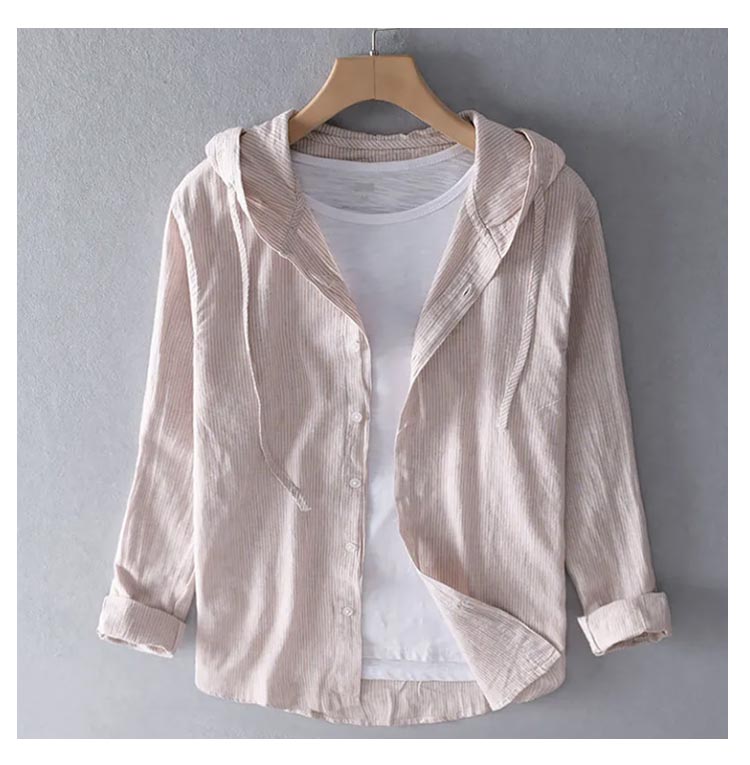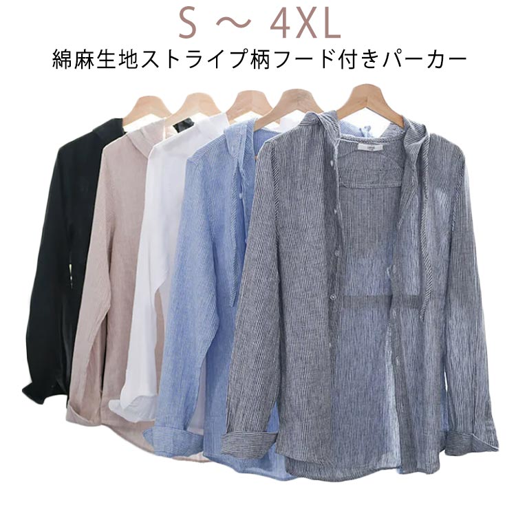 | S ~ 4XL 綿麻生地ストライプ柄フード付きパーカー すっきりとしたキレイシルエット 通気性にも優れて水分水分の吸湿、発散が速く肌にベトつきにくい麻+綿素材使用 ふんわりとした触り心地のいい生地、負担なく着こなせるリラックス感 ゆったりと計算されたシルエットが余裕を持った大人のお洒落を楽しむ | |