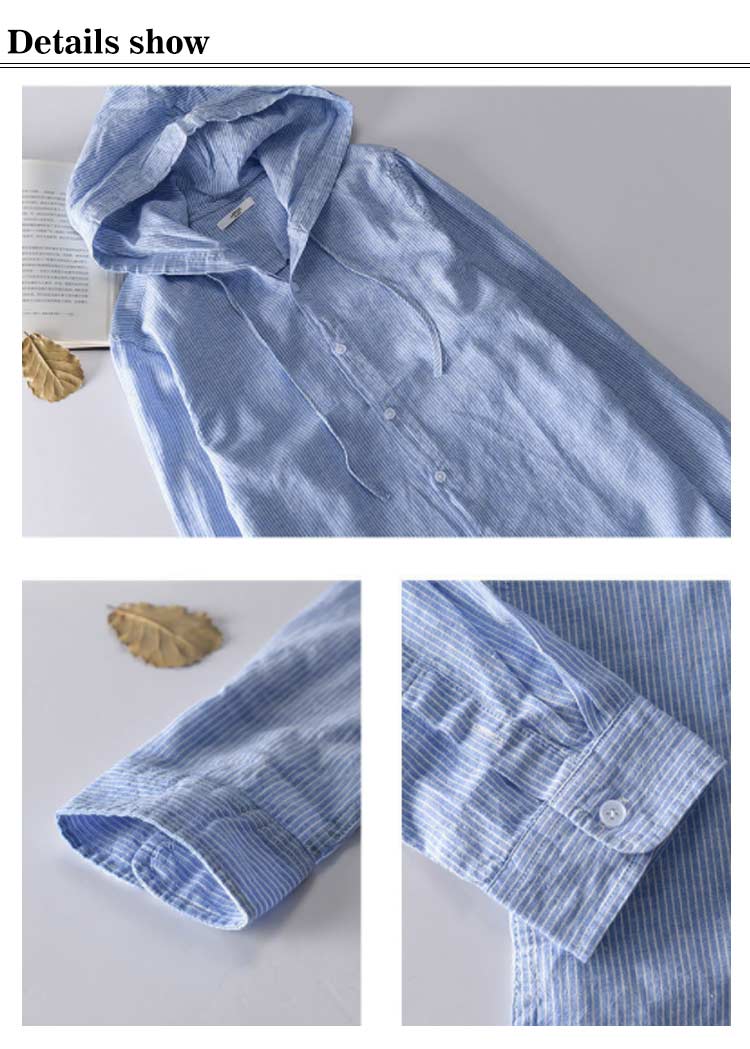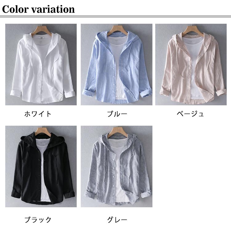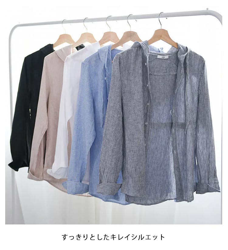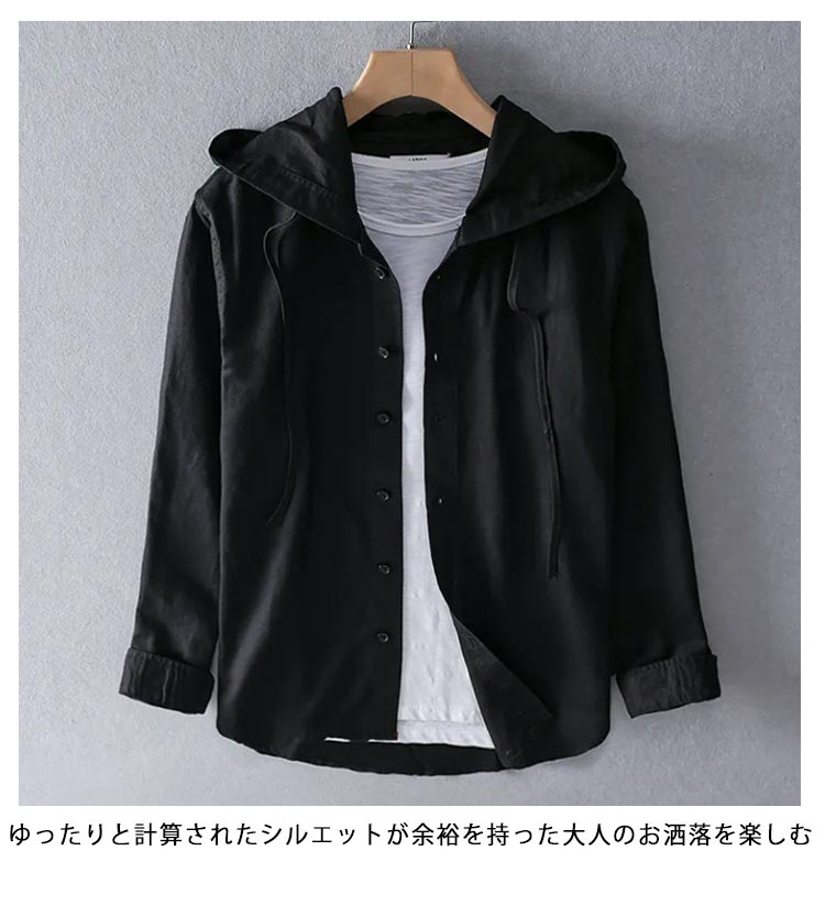フード付きパーカー メンズ ストライプ リネンシャツ 綿麻 リネン パーカー 前あき ボタンパーカー 長袖 Tシャツ リネンTシャツ 長袖パーカー 前開き 薄手 夏 春夏 麻 綿麻 薄手 涼しい 無地 カジュアル 送料無料