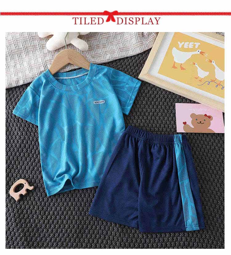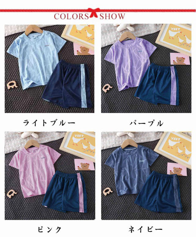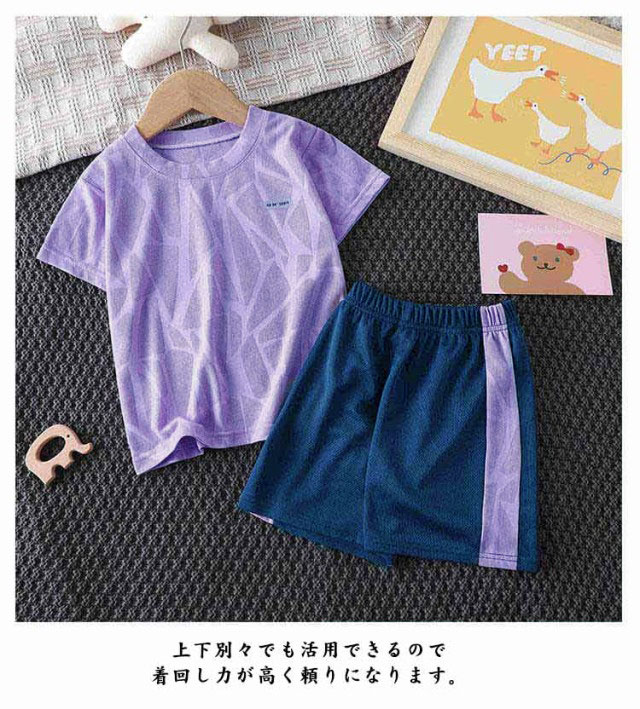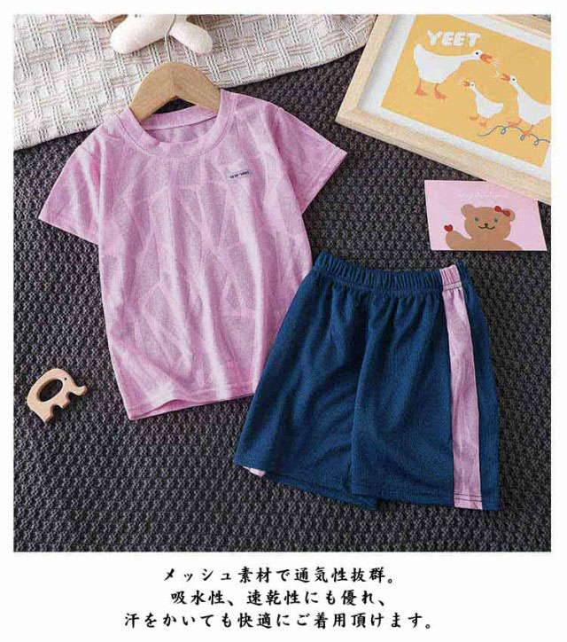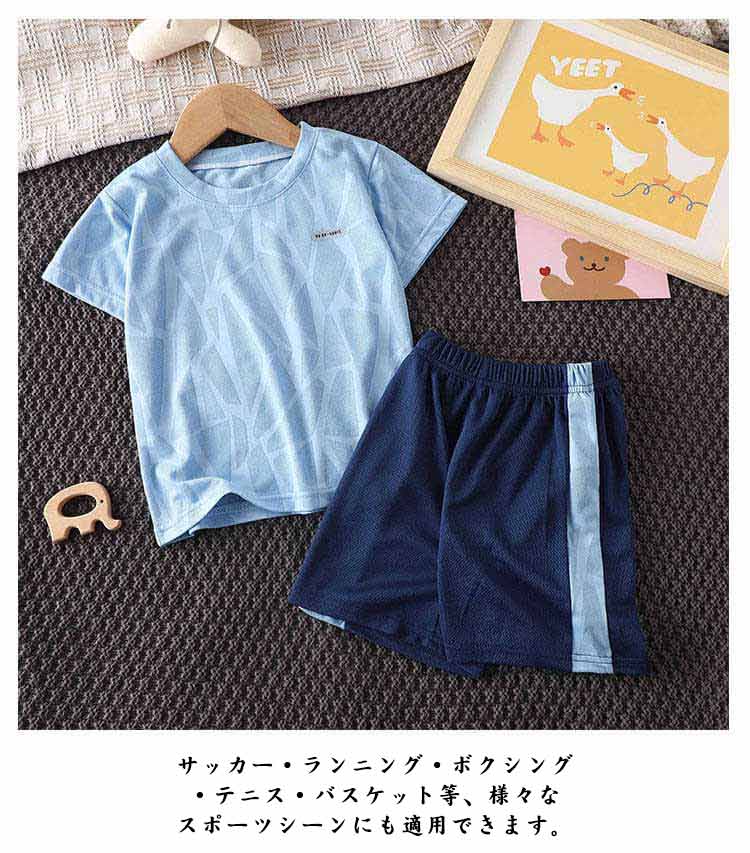 【キッズスポーツウェア 上下2点セット】【吸汗速乾・通気性】【90~160cm】半袖Tシャツショートパンツの2点セットのスポーツウェア。メッシュ素材で通気性抜群。吸水性、速乾性にも優れ、汗をかいても快適にご着用頂けます。上下別々でも活用できるので着回し力が高く頼りになります。サッカー・ランニング・ボクシング・テニス・バスケット等、様々なスポーツシーンにも適用できます。