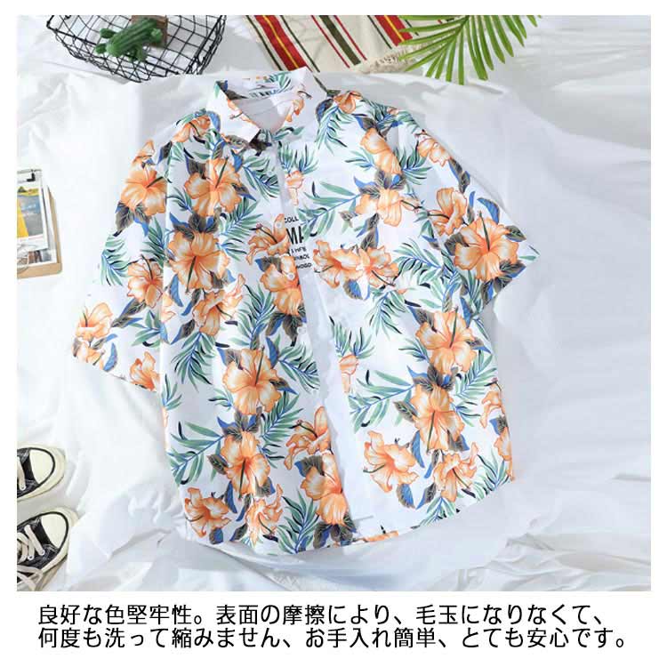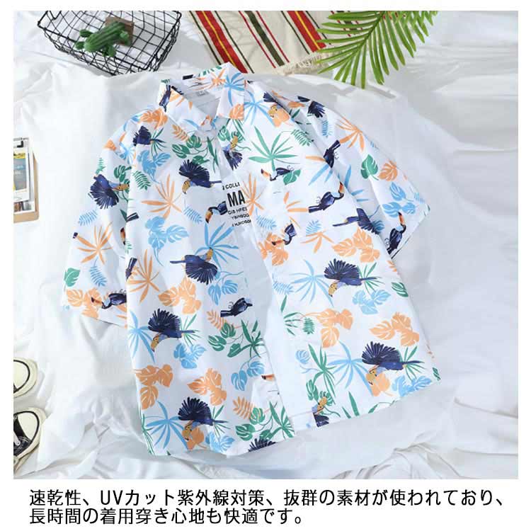 柔らかく肌触りの良いポリエステル素材を採用。快適な通気性も魅力的で見た目、着心地ともに抜群の清涼感を楽しめます。速乾性、UVカット紫外線対策、抜群の素材が使われており、長時間の着用穿き心地も快適です。良好な色堅牢性。表面の摩擦により、毛玉になりなくて、何度も洗って縮みません、お手入れ簡単、とても安心です。大人のリゾート感をカラフルに表現できる定番のアロハシャツで、羽織ったり、腰に巻いたり、重ね着など自分らしく着こなせます。海水浴、ビーチウエア、旅行、リゾートウェディング、スポーツ、水着以外にタウンウエアとして着用もオッケーです。