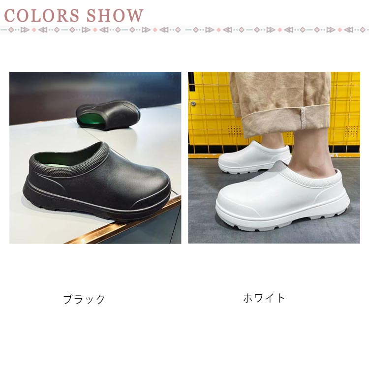 コックシューズ 厨房靴 サンダル 超軽量 EVA素材 疲れない 滑りにくい 耐水 耐油 抗菌 防臭 撥水 防水 つま先保護 黒 白 飲食店 キッチン 調理靴 業務用 作業靴 食品加工 ホール 工場 レディース メンズ 22.5~27.5cm 送料無料