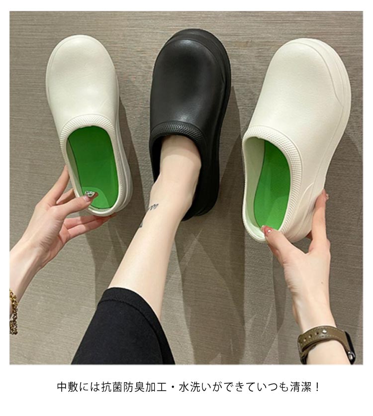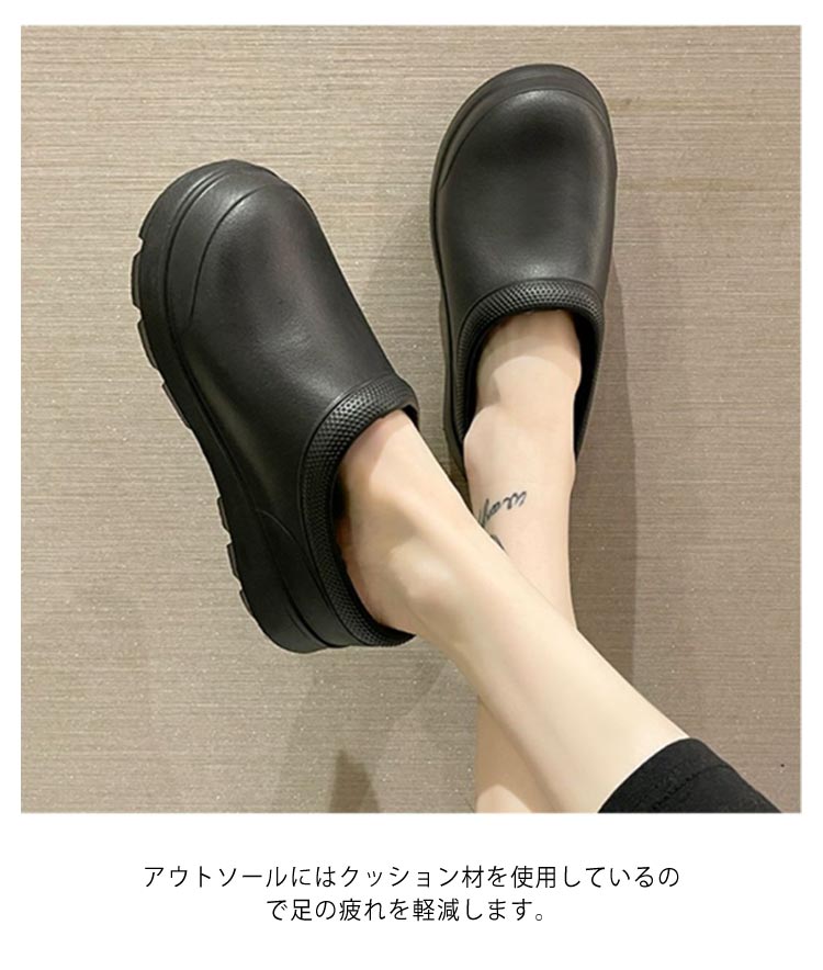 脱ぎ履きラクラク・滑りにくい・疲れにくいコックシューズ!22.5~27.5cmアッパーにはEVAを使用したことで、撥水性、耐油性がよくなり、汚れが拭き取りやすくなりました!中敷には抗菌防臭加工・水洗いができていつも清潔!アウトソールにはクッション材を使用しているので足の疲れを軽減します。靴底は滑り止め加工がある。水と油に強くすべりにくい。耐摩耗性があり耐久性向上。かかとが低く設計されているので、サッと簡単に脱ぎ履きできます。驚きの軽量設計!ゆったりサイズなので、一日の立ち仕事での足のむくみにもやさしい。
