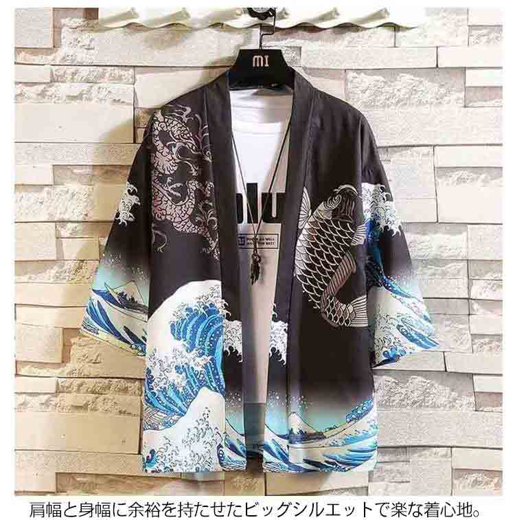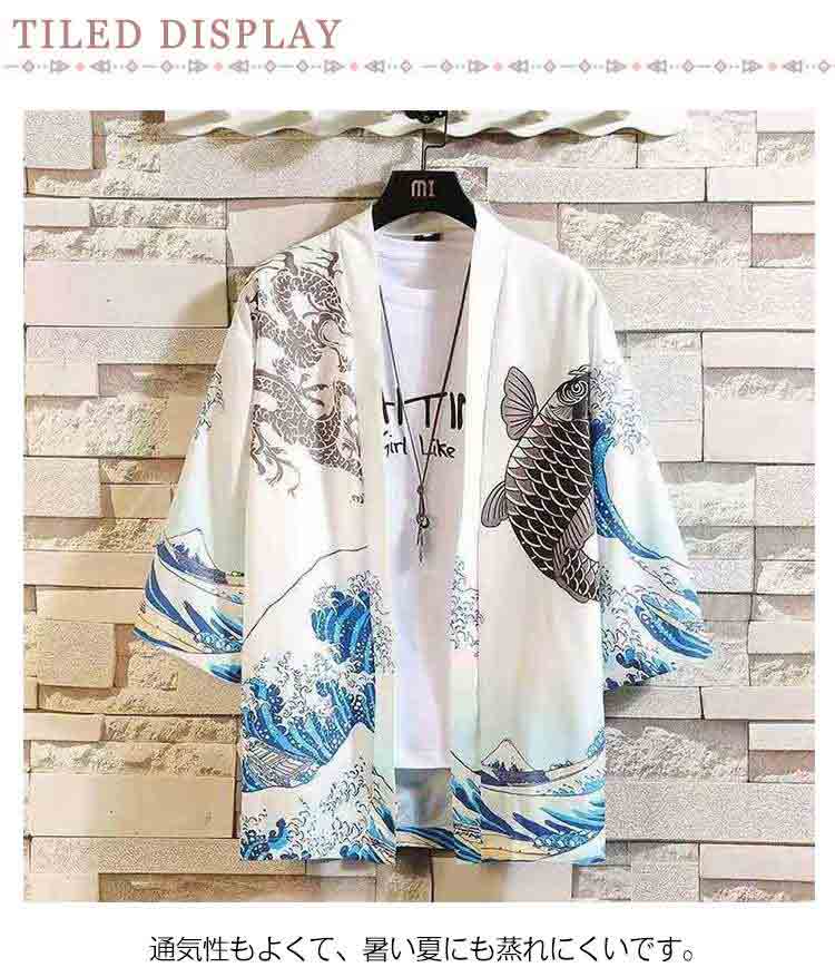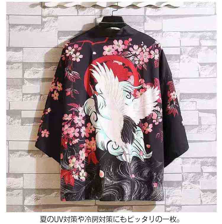 はっぴ 法被 お祭り 男女兼用 和風 半纏 はんてん ハッピ お祭り イベント 衣装 学際 文化祭 体育祭 七分袖 カーディガン 薄手 日焼け止め 羽織 着物 メンズ レディース ユニセックス 鯉 鳥 桜 鶴 竜 柄 送料無料