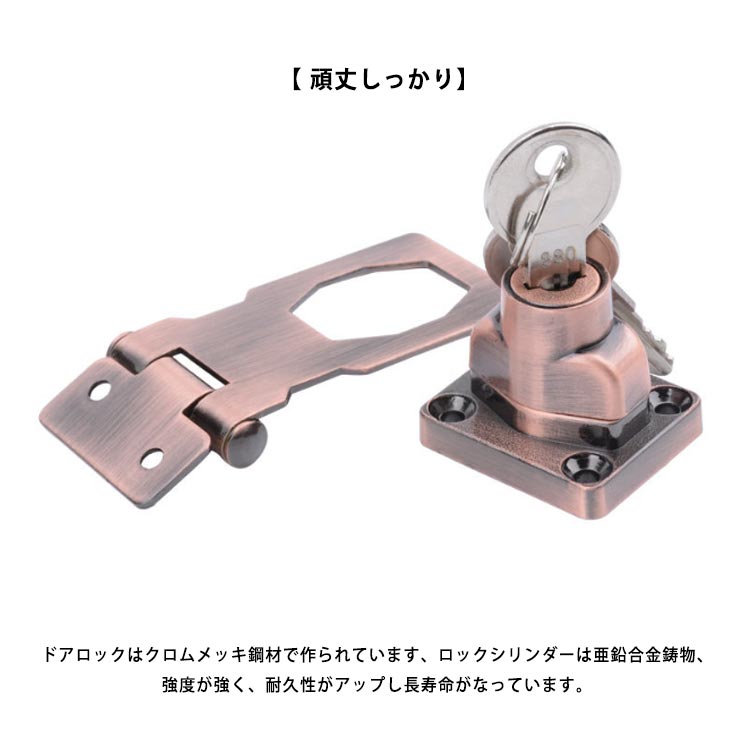 ドアロック 引き戸 鍵 後付け 引き出しロック 鍵ロック 金具 室内ドア ねじ留め 防犯 ドア 補助錠 鍵 ロック 90度 180度 補助ロック 棚 収納ボックス 食器棚 南京錠 ドアキャビネット 簡単設置 盗難防止 部屋/物置/ドア/キャビネットに最適