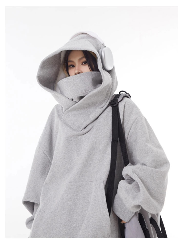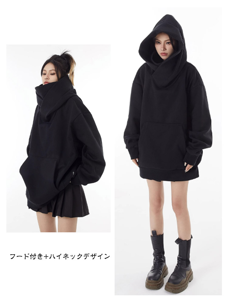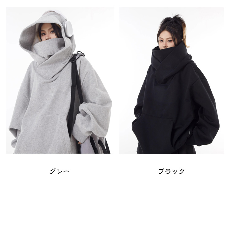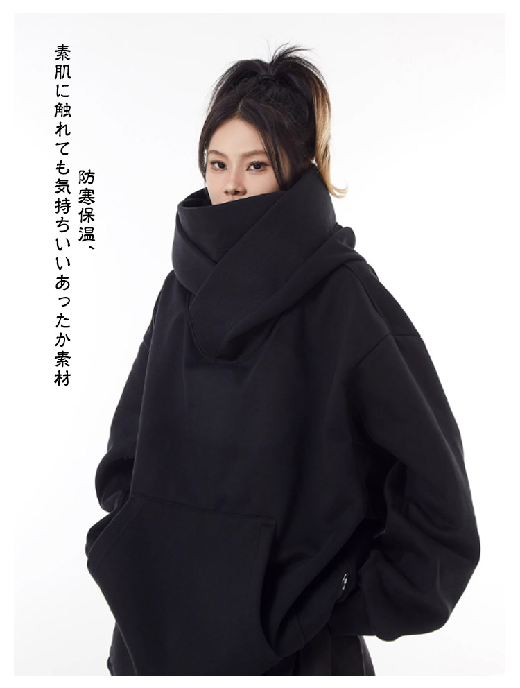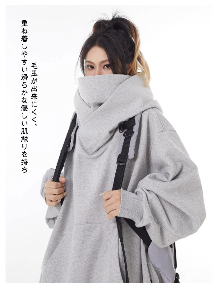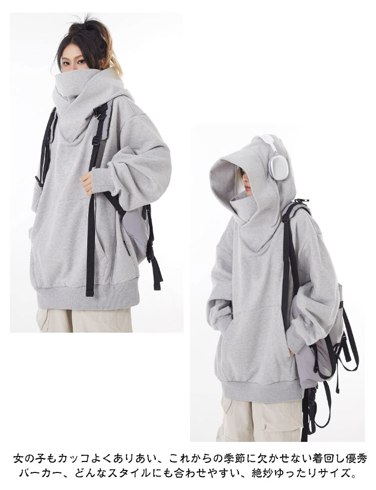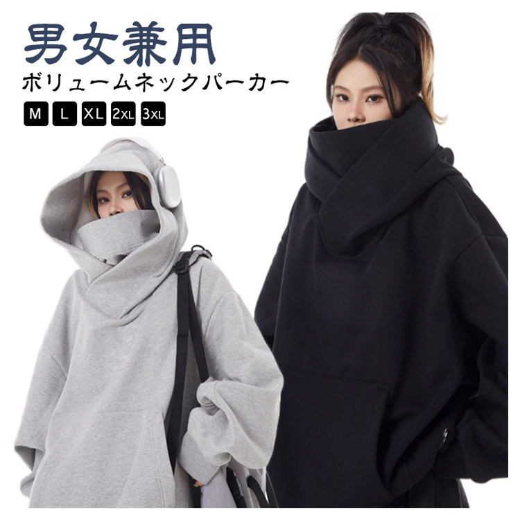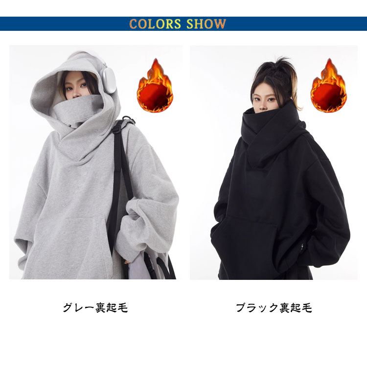 ボリュームネックパーカー 裏起毛 レディース メンズ プルオーバー フード付き 男女兼用 パーカー 忍者パーカー 防寒 保温 機能的 ゆったり 肌に優しい 吸湿 通気 柔らかい アウター カジュアル 外出 通学 アウトドア キャップ