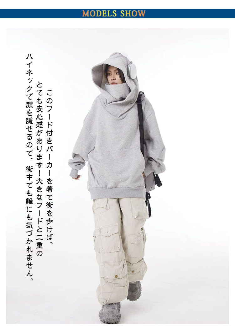 | 【ボリュームネックパーカー】【男女兼用】【M~3XL】 このフード付きパーカーを着て街を歩けば、とても安心感があります!大きなフードと二重のハイネックで顔を隠せるので、街中でも誰にも気づかれません。 女の子もカッコよくありあい、これからの季節に欠かせない着回し優秀パーカー、どんなスタイルにも合わせやすい、絶妙ゆったりサイズ。 ポイント: フード付き+ハイネックデザイン 毛玉が出来にくく、重ね着しやすい滑らかな優しい肌触りを持ち 防寒保温、素肌に触れても気持ちいいあったか素材 | |