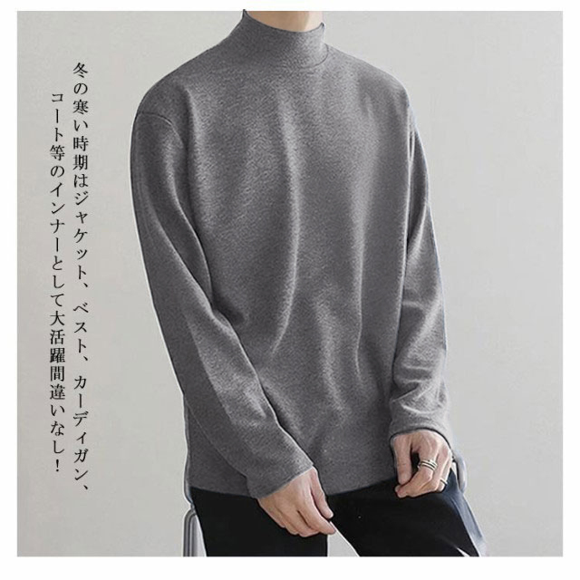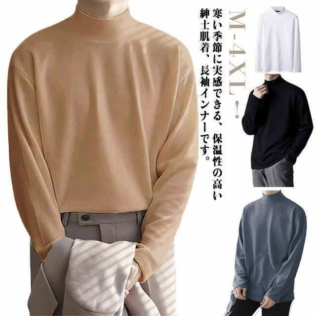 ハイネック tシャツ メンズ 長袖 インナー ロンT 秋冬 両面起毛 インナーシャツ 防寒着 防寒 肌着 あったか ヒートインナー あったかインナー 柔らかい ストレッチ トップス カットソー タートルネック 裏起毛 保温 極暖 吸湿発熱 インナー 大きいサイズ 無地