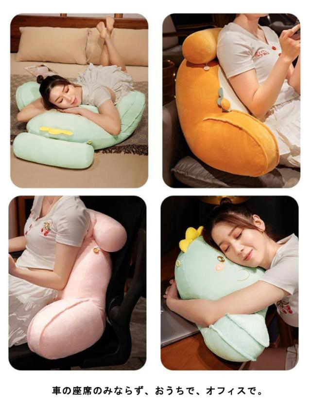 ぬいぐるみみたいな可愛いクッションですやさしく腰回りや背中部分をサポート。リラックスタイムには壁を使ってゆったりともたれかかれます。ひざまくらのように使ったり、肩までもたれかかったり、どんな姿勢でもやさしく受け止めてくれますふわふわ気持ち良い肌触りで癒されます、より心地良く。腰痛対策としても心強い腰当てです車の座席のみならず、おうちで、オフィスで。椅子の上にセットして気軽にリラックスタイムを満喫。抱き枕にもなります。