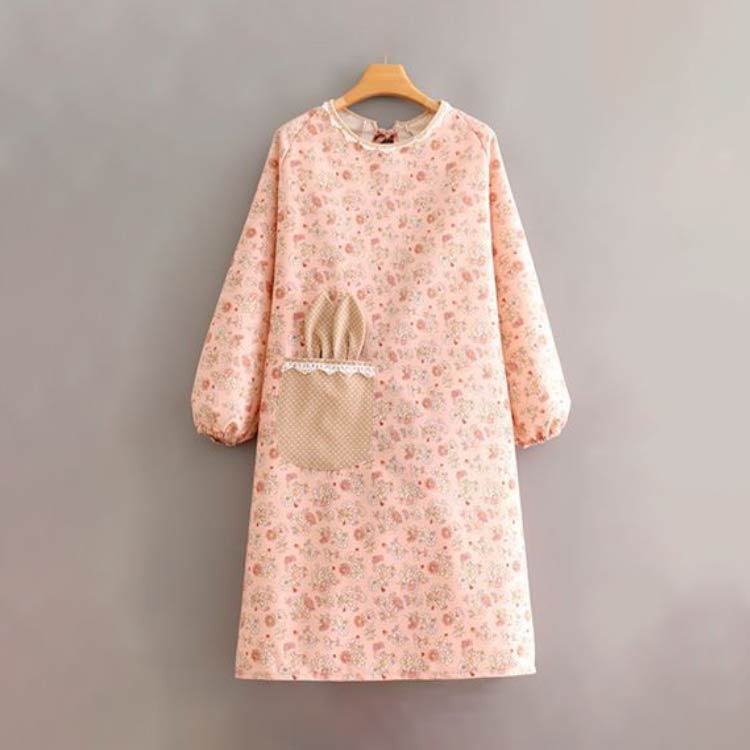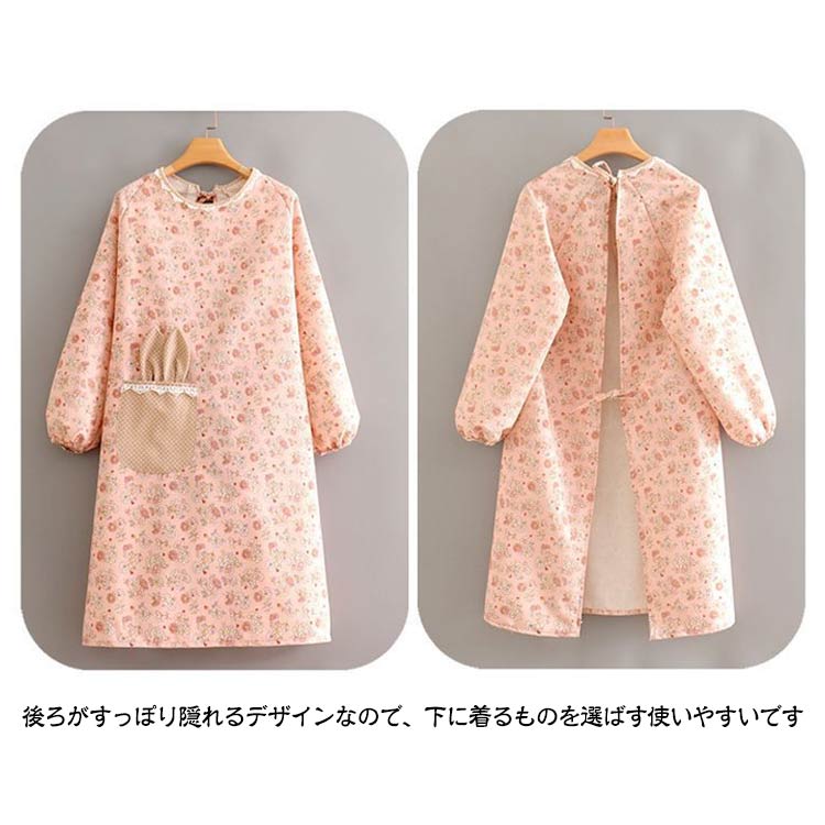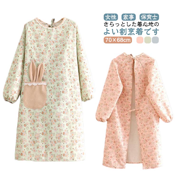割烹着 かっぽう着 オーバーサイズ ポケット付き タブリエ ウェア ウエアタイプ かわいい レディース 女性 スモック 無地 ストライプ チェック ルームウェア 保育士 家事 キッチン 料理 エプロン 秋 冬 ギフト プレゼント きれい かわいい