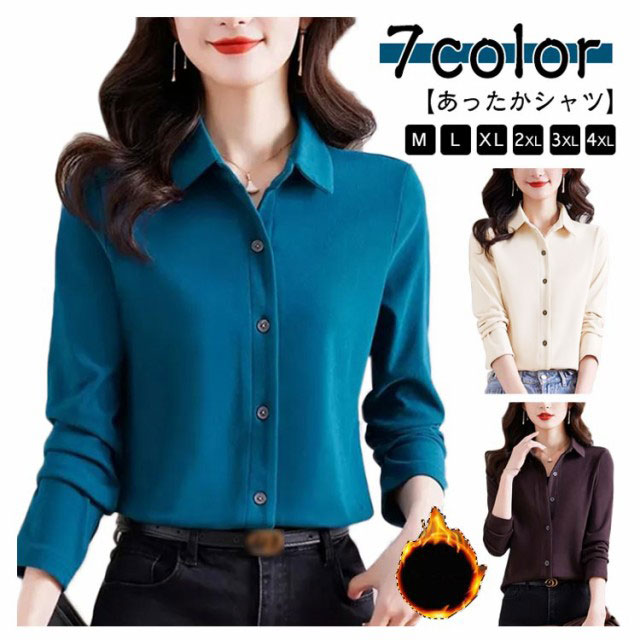 あったか シャツ ブラウス レディース 長袖 トップス 秋冬 裏起毛 防寒 暖かい インナー オフィス カジュアル ビジネス 通勤 事務服 厚手 秋 冬 裏起毛シャツ 大人 シンプル 大きいサイズ おしゃれ シャツブラウス 無地 フォーマル 清楚 体型カバー