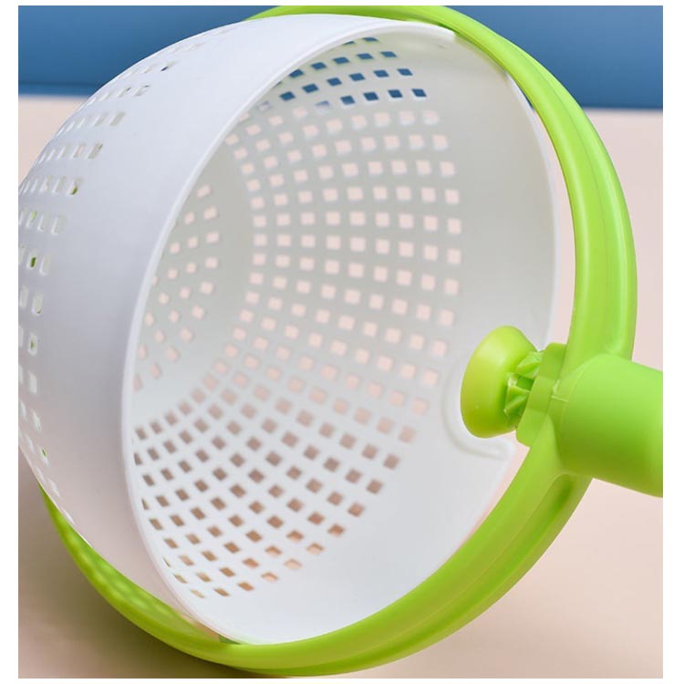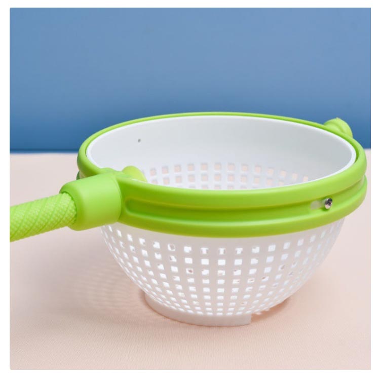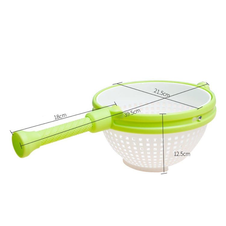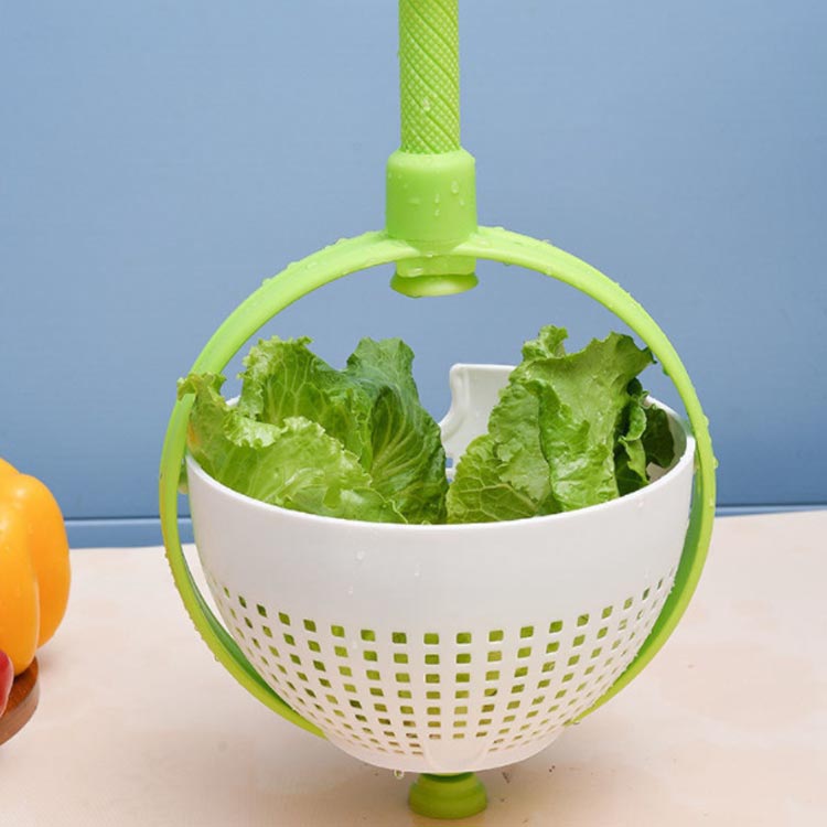 | サラダスピナーの機能を兼ね備えたハンドル付きの水切りザル。 シンクの中でハンドルを垂直に押し込むと、ザルが回転して遠心力で水を切れます。 吸盤がシンクに吸着するので、安定感バツグン! ハンドル付の水切りザルとしても使えます。 収納時は、ハンドルを短く押し込み、省スペースで収納できます。 操作簡単:1.ハンドルを伸ばします。2.食材を洗い、中に入れます。(葉ものや果物など)3.ザルと垂直になるようにハンドルを立てます。4.いよいよ!シンクで水を切ります。※吸盤がついているので立てたままでも倒れません。5.ハンドルを押し込むだけ! 高速で回転し、水を切ります。 | |