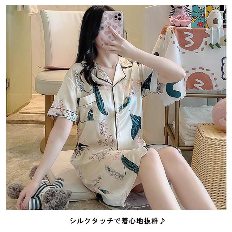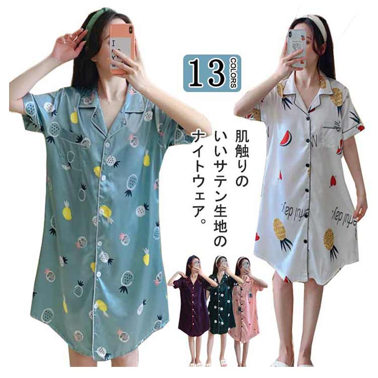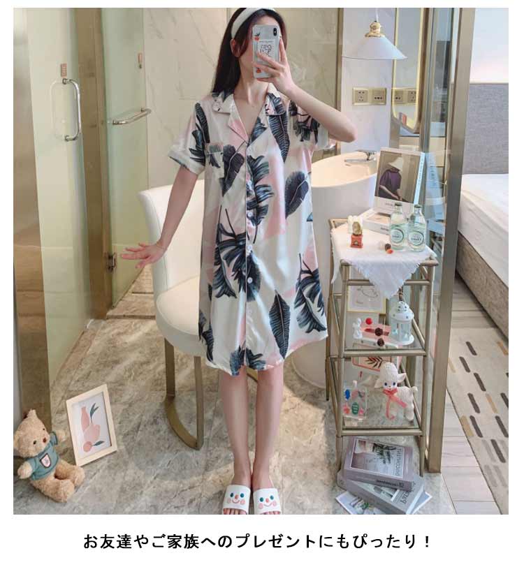 パジャマ ワンピース 前開き 春 秋 夏 サテン パジャマ ワンピース ランジェリー ロング丈 無地 シルクタッチ レディース ルームウェア 産後 マタニティ 女性 女の子 ママ 大人 可愛い かわいい セクシー 大きいサイズ