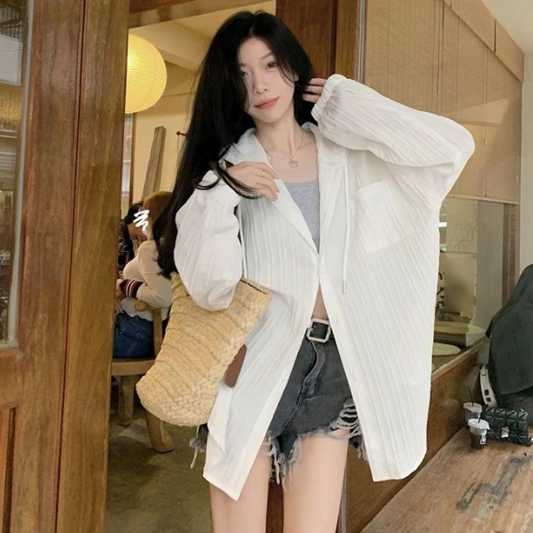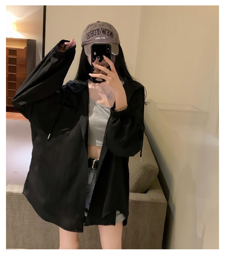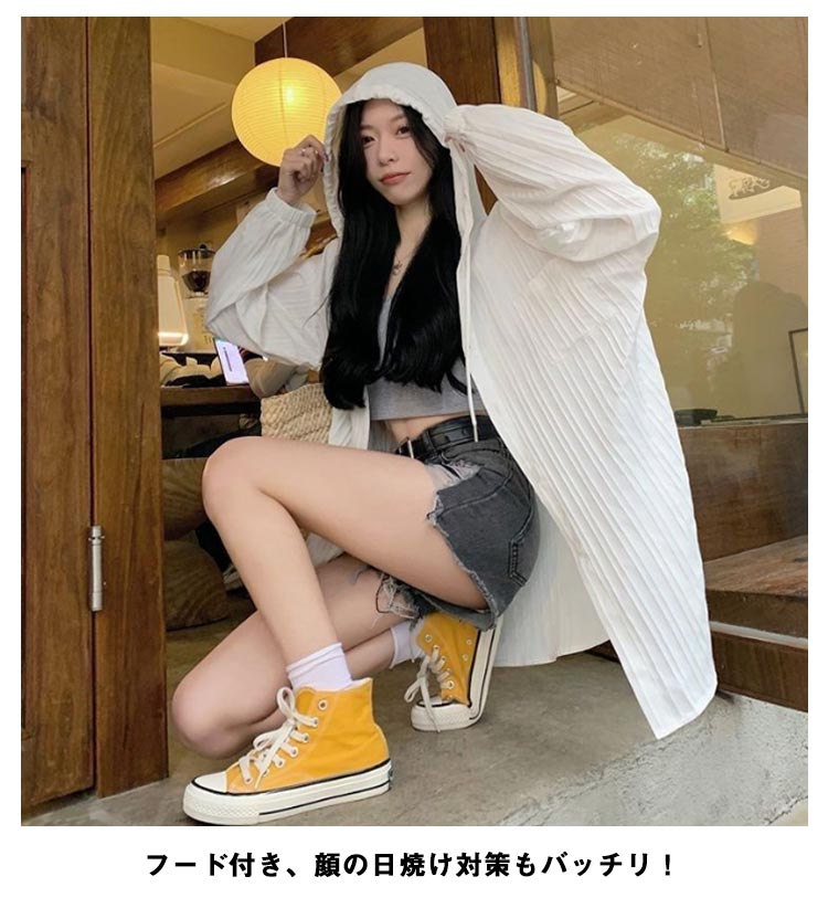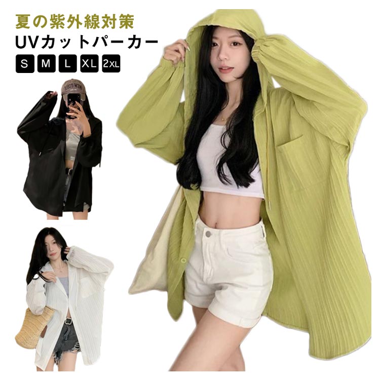 | 夏の紫外線対策 UVカットパーカー 紫外線が強い時期のUV対策として、しっかりとしてくれる! 通気性に抜群の素材で、肌触りが良い、上品でエレガントな印象。 軽くて通気性に優れて、お肌に優しい、夏にオススメの涼しい素材! フード付き、顔の日焼け対策もバッチリ! 前開きでカーディガンとしておすすめで、UVカットや冷房対策としては大活躍できるトップスです。ゆったりしたシルエットで体型カバーしてくれて、幅広いお方たちが着用いただけます 。 | |