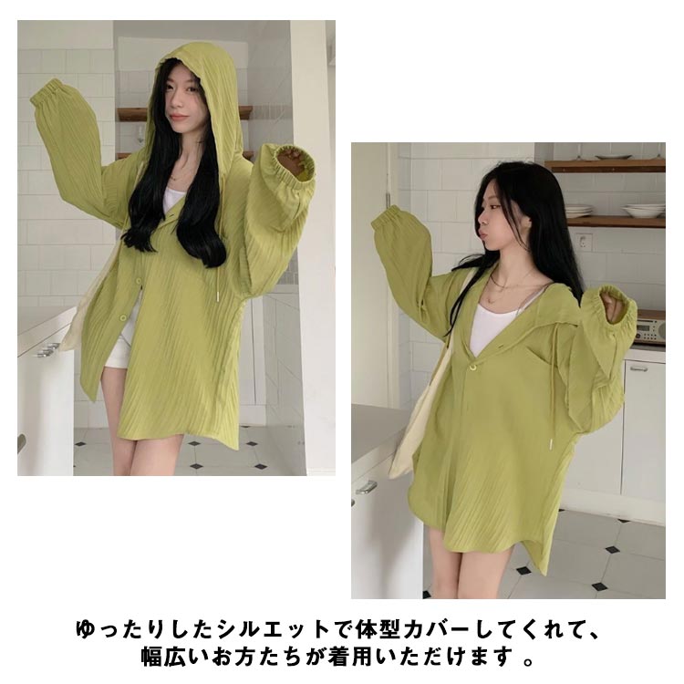 夏の紫外線対策 UVカットパーカー紫外線が強い時期のUV対策として、しっかりとしてくれる!通気性に抜群の素材で、肌触りが良い、上品でエレガントな印象。軽くて通気性に優れて、お肌に優しい、夏にオススメの涼しい素材!フード付き、顔の日焼け対策もバッチリ!前開きでカーディガンとしておすすめで、UVカットや冷房対策としては大活躍できるトップスです。ゆったりしたシルエットで体型カバーしてくれて、幅広いお方たちが着用いただけます 。