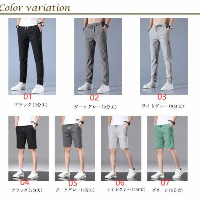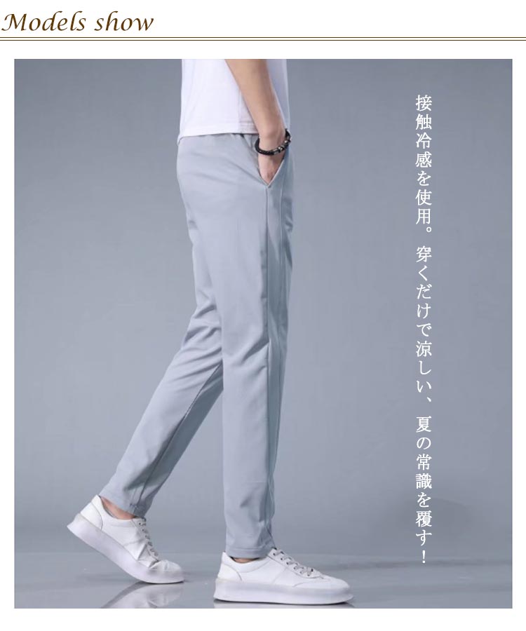 冷感パンツ メンズ アイスシルク 接触冷感 ひんやり 涼しい 夏 ゴルフパンツ スキニーパンツ チノパン アイスシルクパンツ 9分丈 イージーパンツ 薄手 ストレッチ 伸縮 美脚 長ズボン 通気 速乾
