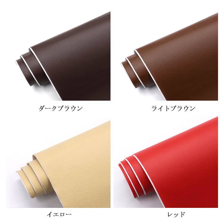 全20色!貼るレザー生地!防水・接着性抜群な貼るレザー登場!サイズ100*100cm!ソファーや椅子などの破れ、カギザキなどにたっぷり使える大判サイズです。丈夫で柔らかい合皮レザー生地、伸びが良いので、曲面にも馴染ませることができます。表面は合皮無地、若干光沢があり、高級感があります。本物のような質感で高級感を演出してくれます!合皮レザー生地の裏面が接着シールになっており、様々な物に貼り付けることが出来ます。接着剥の粘着力が優れていて簡単に剥がれません。ご自宅にはハサミで簡単に作業が可能、扱いやすさも大きな魅力の便利レザーシートです。豊富なカラーバエーション気軽に、インテリアのイメージチェンジも楽しめます!自分好みのインテリアが実現!補修シールとして自転車のサドル・車のシート・バイクのシート・ソファーのシートなどの張り替え、修補、破れ隠し、椅子の座面張替。壁紙、インテリア、DIYなどにも使用でき、色々な用途にご利用いただくことができます。化粧箱、ギフトケースなどに貼るにも最適です。
