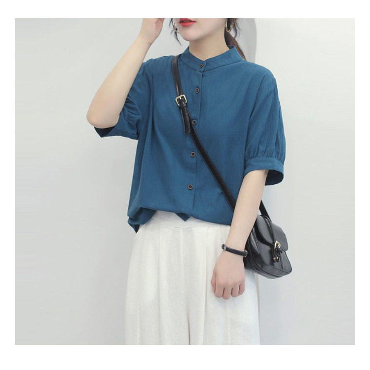シンプル・カジュアルなレディースシャツ綿混素材でさらっとした肌触りが着心地良い。サラッと着るだけでナチュラルな雰囲気に。首元はノーカラーですっきりと上品に見せてくれます♪袖はふんわりとボリュームを持たせて可愛らしさをアップ。ゆったりとした作りがさりげなく体型カバーできます。