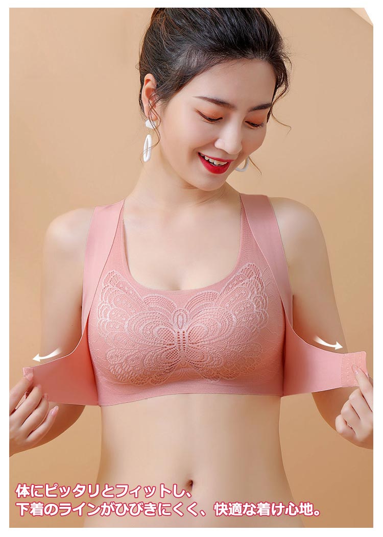 縫い目ゼロを実現したシームレスブラノンワイヤーブラは圧迫感を感じず自然な着け心地で軽くてラクラク!体にピッタリとフィットし、下着のラインがひびきにくく、快適な着け心地。横流れを防ぎ、美しいバストラインを実現します!シームレスで幅広の肩ストラップは肌や肩への負担を軽減し、長時間の着用でも食い込みがありません!