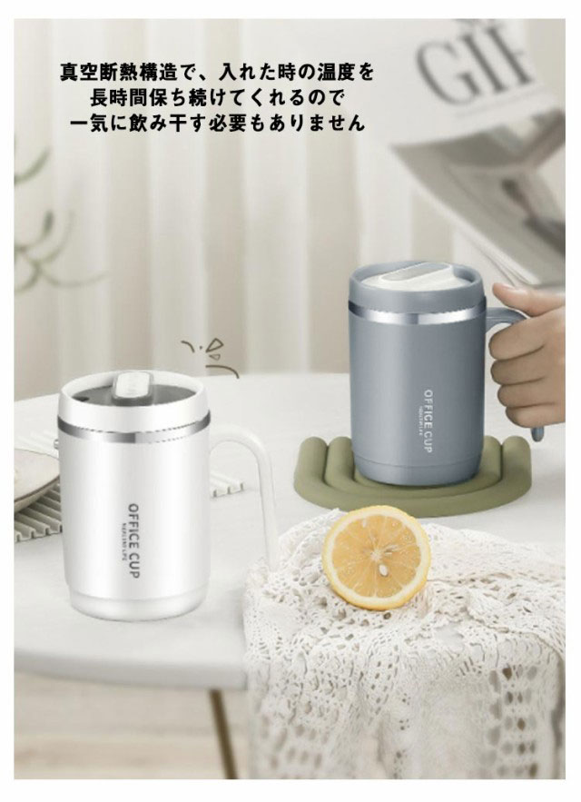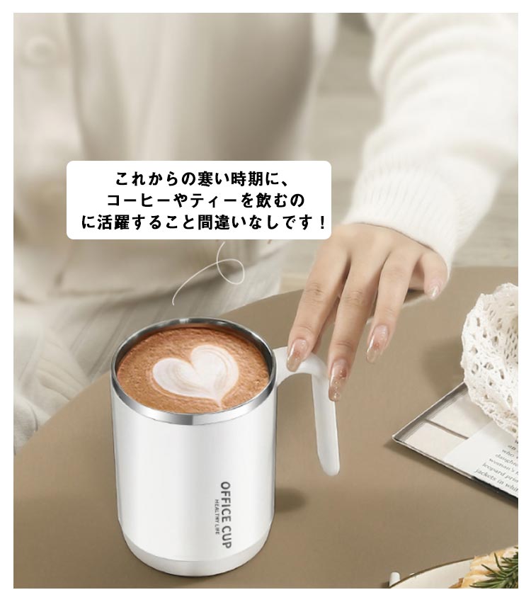 | オフィスやレジャーシーンにもおススメの高機能コーヒーマグ 真空断熱構造で、入れた時の温度を長時間保ち続けてくれるので一気に飲み干す必要もありません さらに蓋をすることで上部から熱を逃さず、中身がこぼれにくく持ち運びも楽々です。 食器などに使われている耐久性?耐錆性に優れたステンレスを採用しているためお手入れも簡単 家ではもちろん、オフィスやアウトドアにもお使い頂けます。 これからの寒い時期に、コーヒーやティーを飲むのに活躍すること間違いなしです! | |