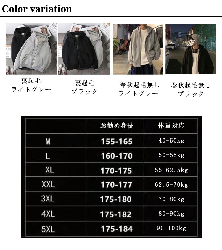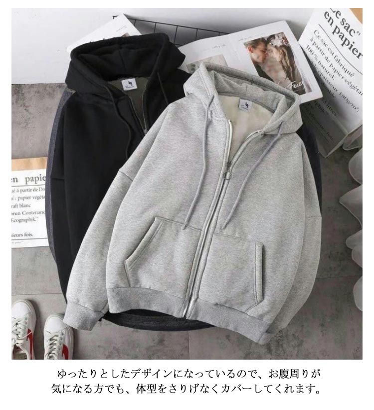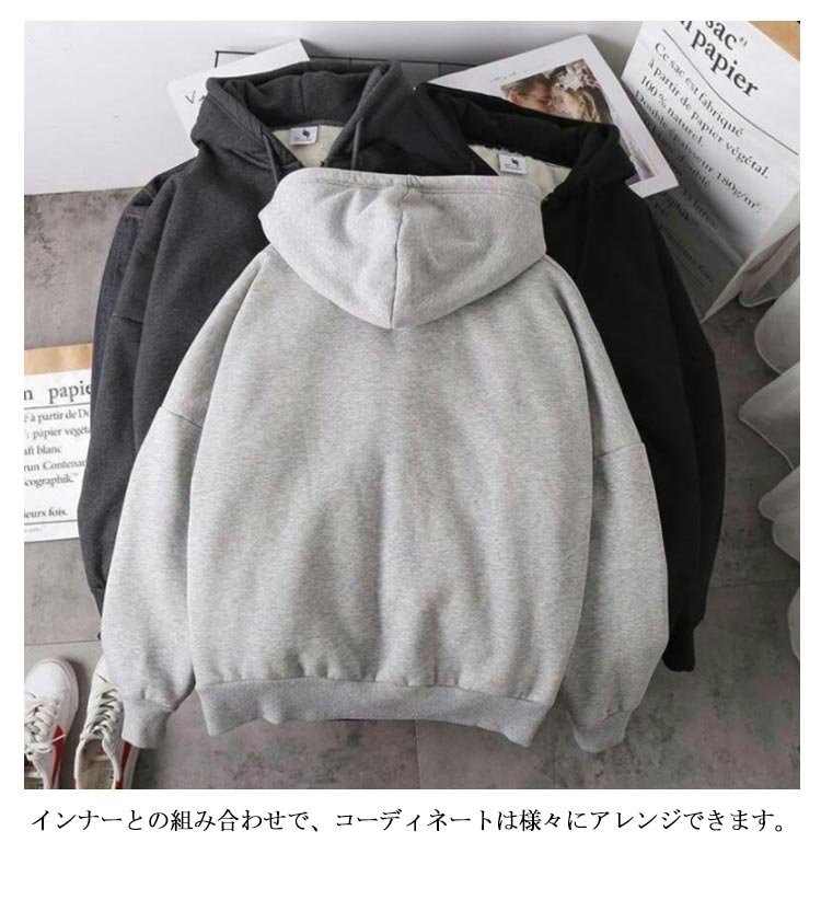 【送料無料】 裏起毛 パーカー レディース 厚手 メンズ ボア パーカー あったか 防風 コート 秋 冬 ジップパーカー 大きめ 長袖 ポケット付き カジュアル 男女兼用 トップス ボリューム スウェット ブラック グレー S M L LL 2XL XXXL 4XL 5XL 送料無料
