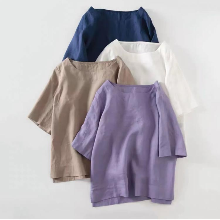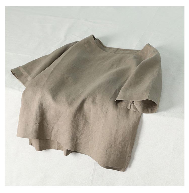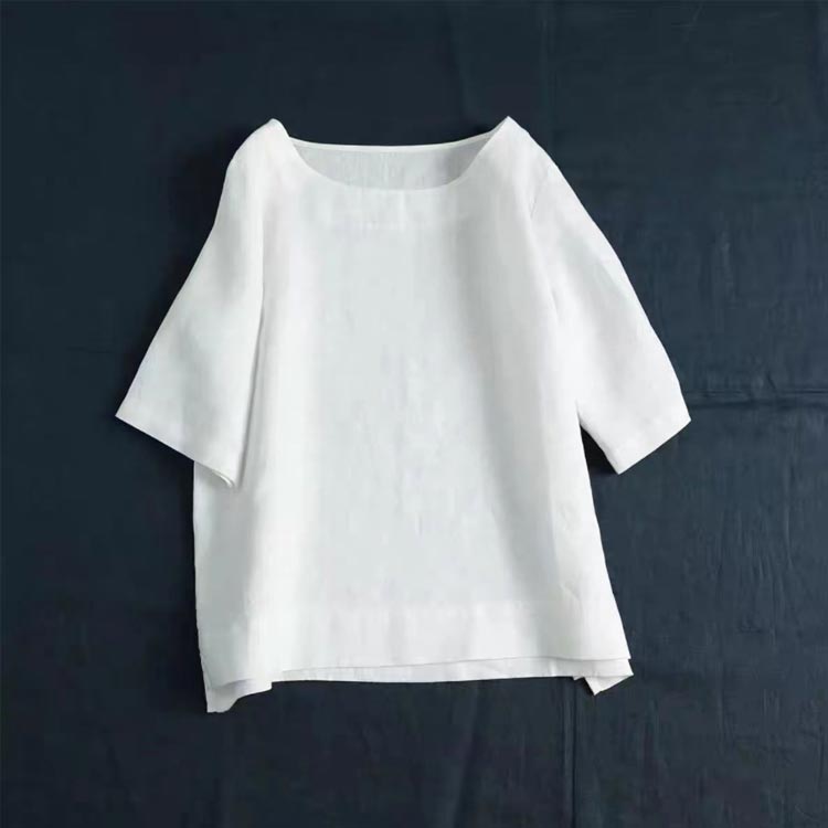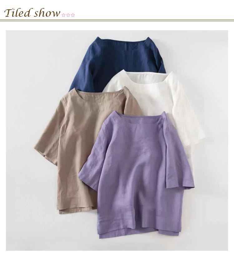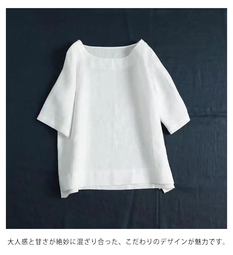 リネントップス レディース 綿麻 七分袖 ブラウス 春服 トップス カジュアル おしゃれ シャツ シンプル ナチュラル コットンリネン ゆったり 体型カバー ショート丈 ラウンドネック 母の日 敬老の日 ギフト プレゼント 送料無料 20代 30代 40代 50代