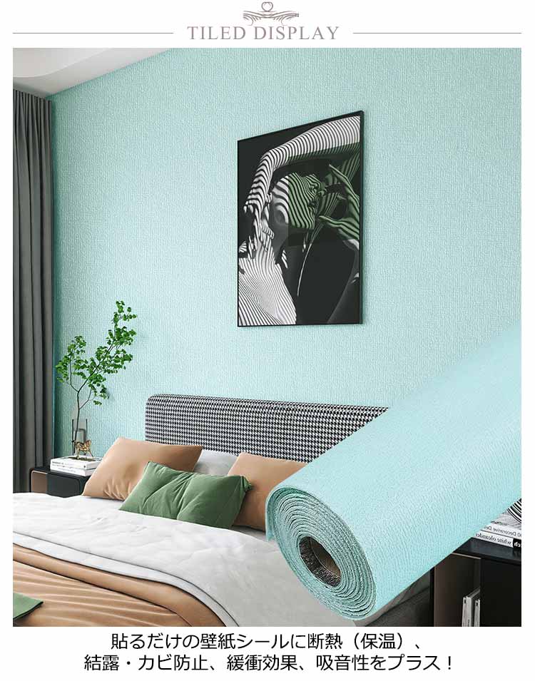 壁紙 補修 シール 10m 壁紙シール 厚手 2mm 防水 断熱 結露防止 カビ防止 吸音 8色 幅50cm×長さ1000cm 厚み2mm のり付き 裏面アルミフィルム クッション壁紙 リビング ダイニング 玄関 和室 送料無料
