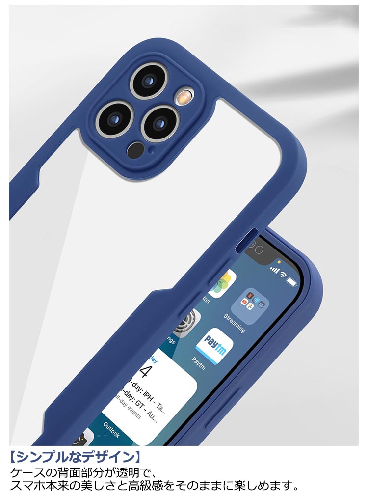 セット内容:ケース本体 (前面×1、背面×1) 【証明された信頼ある保護力】四隅にエアバックと強化バンパーコーナーが設計され、スマホケースが落下時の衝撃を最大限に軽減できます。【2層構造】取り付けと分解が簡単。【優れた耐衝撃性能】耐衝撃材料が採用されていますので、衝撃にとても強いです。嵌め込み式前透明カバーと透明バックカバーの組み合わせにより、360°全方位からスマホを保護してくれます。落下、衝撃、擦れ傷など一切心配ありません。【滑らない】滑りにくくなるように加工を施し、落下防止の役に立ちます。【シンプルなデザイン】ケースの背面部分が透明で、スマホ本来の美しさと高級感をそのままに楽しめます。【操作スムーズ】適正なサイズ設計デザインにより、装着したままサイドボタン操作、画面上の操作などもスムーズにできます。本体機能でもある「ワイヤレス充電」もケースを装着したまま行えます。