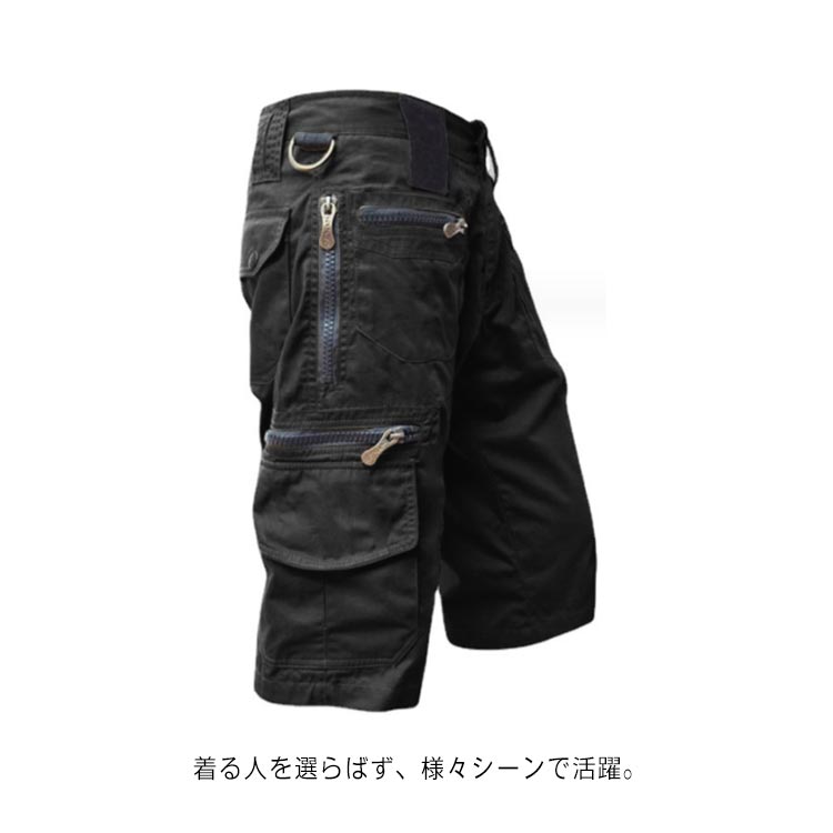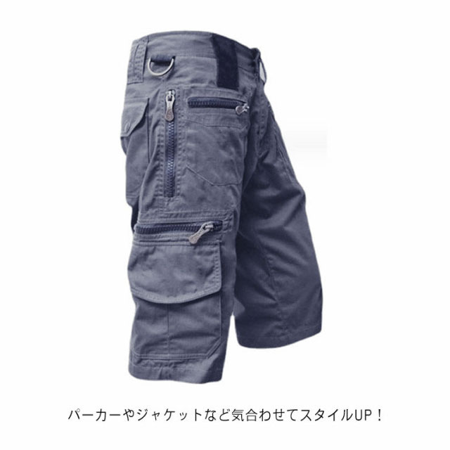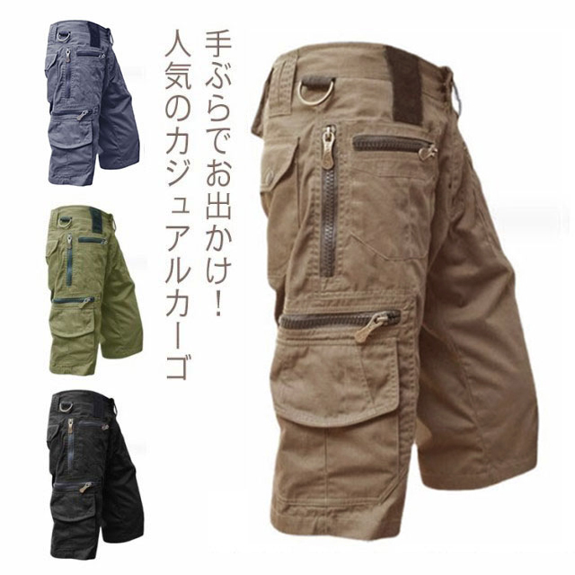 ハーフパンツ メンズ カーゴパンツ 綿 コットン 大きいサイズ 膝丈 七分丈 ショートパンツ チノパン クロップド スリム 半端丈 ミリタリー 作業着 夏