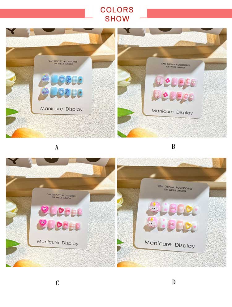 子供用 ネイルチップ 12枚セット 可愛い キッズ 3D 立体 ネイルシール 付け爪 粘着テープ式 貼るだけ カンタン 女の子 こども用 韓国 おしゃれ ハート キャラクター アニマル くま 星 花 フラワー パーティー 結婚式 誕生日 プレゼント 韓国 インスタ映え 送料無料