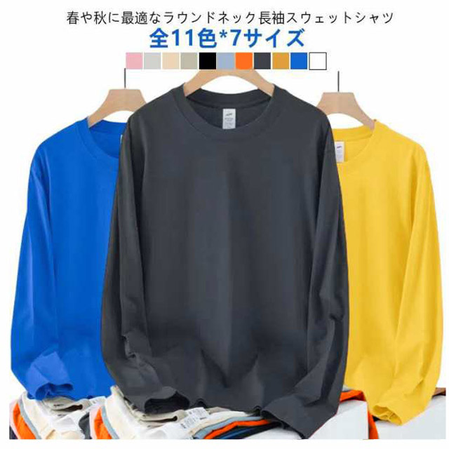全11色*7サイズ春や秋に最適なラウンドネック長袖スウェットシャツゆったりスタイルで体型カバーも可能シンプルで汎用性の高い女性向けのソリッドカラーのデザインカラーも豊富で、男女問わず使えるユニセックスなデザインです