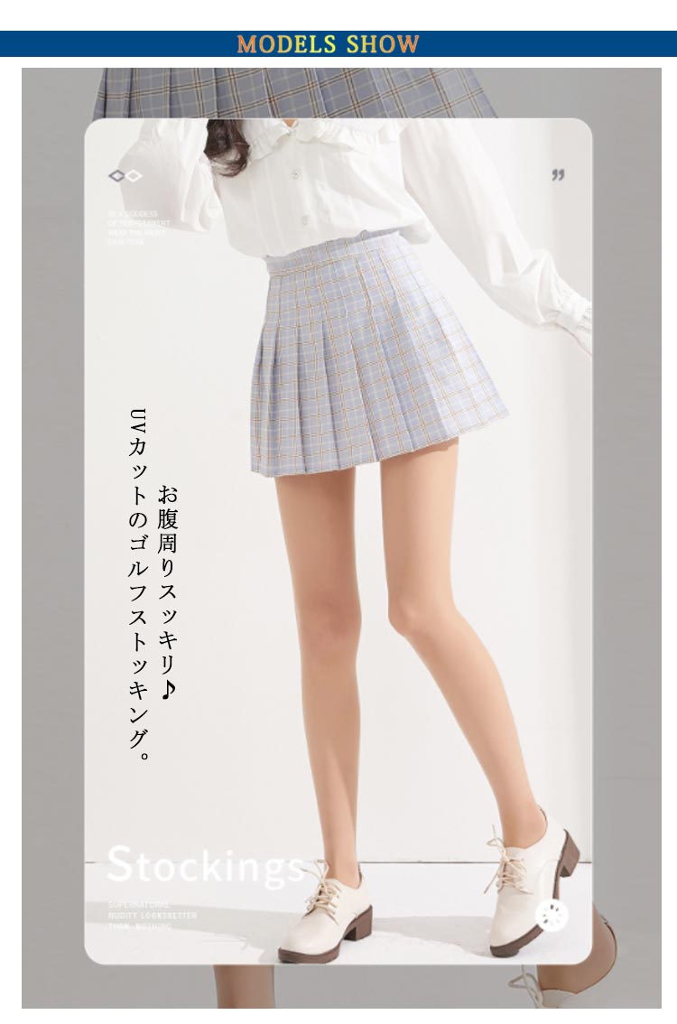 【UVカット】【ストッキング】【ゴルフ用】お腹周りスッキリ♪UVカットのゴルフストッキング。足にピッタリとフィットし、伸縮性に優れて履き心地がバツグンです。UVカットなので長時間外での活動でも安心。日焼けを気にせず、ヒップUP&素肌見え!吸汗速乾にも優れているしいつでも快適な着心地を提供します。スポーツだけではなくカジュアルスタイルにも似合います。肌馴染みのよい、マットで自然なカラー。