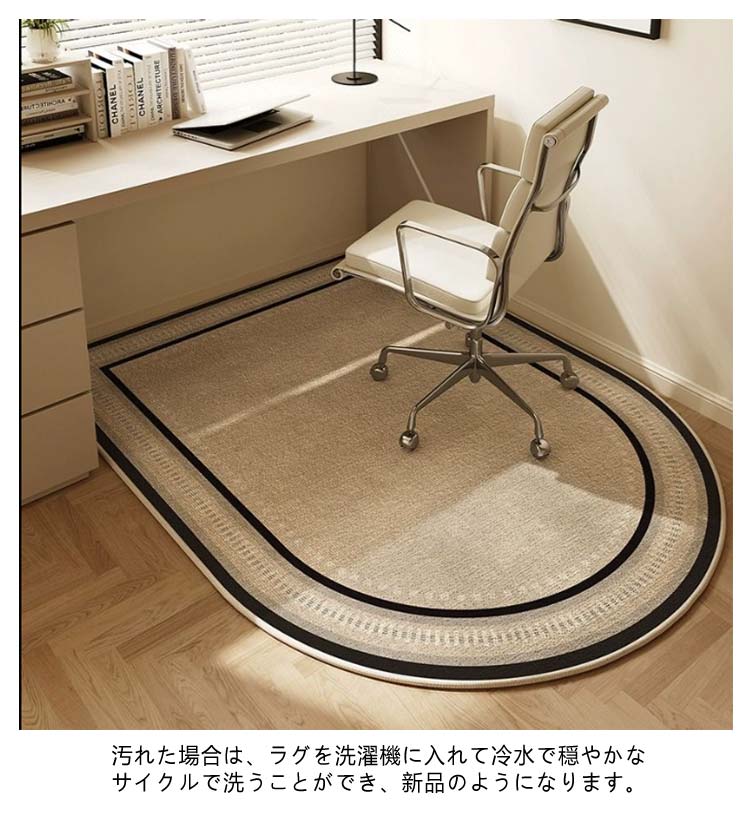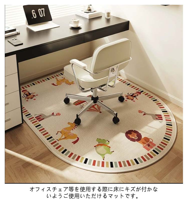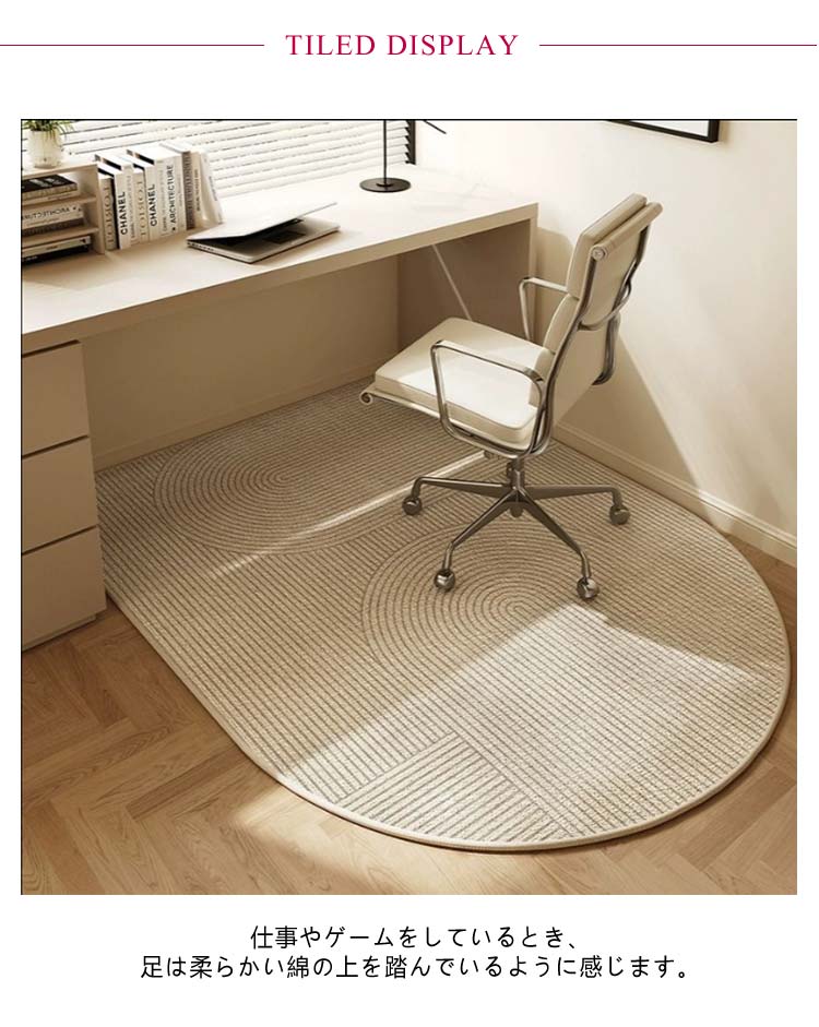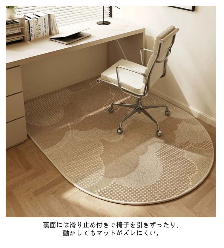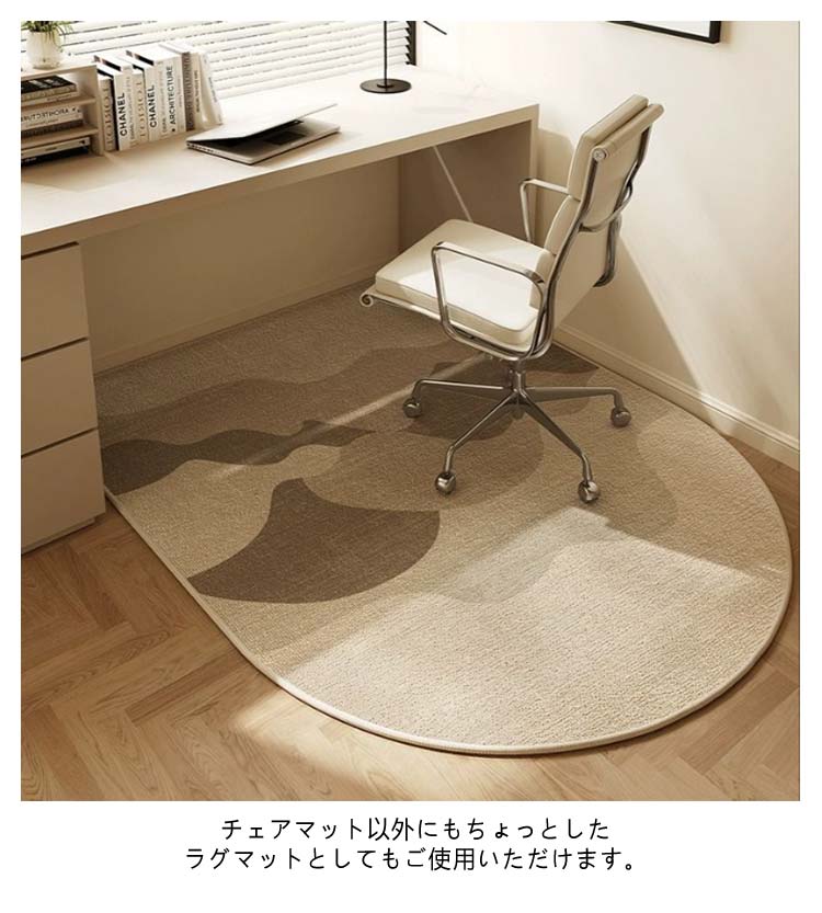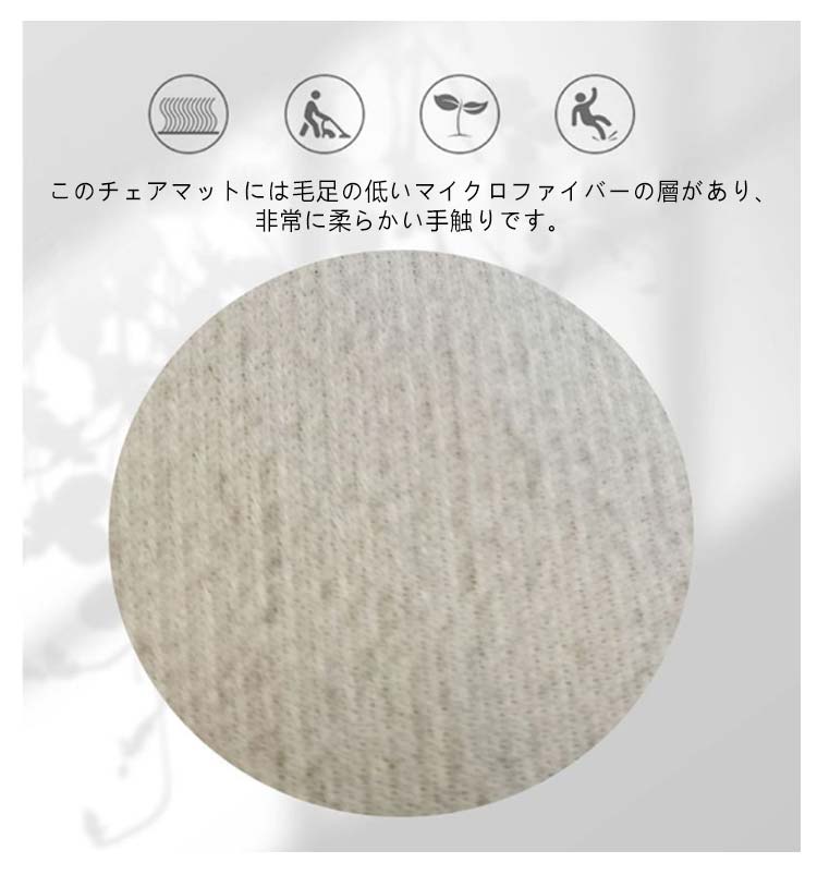 キズや凹みから床を守るチェアマットです。オフィスチェア等を使用する際に床にキズが付かないようご使用いただけるマットです。このチェアマットには毛足の低いマイクロファイバーの層があり、非常に柔らかい手触りです。仕事やゲームをしているとき、足は柔らかい綿の上を踏んでいるように感じます。室内で裸足で歩くのが楽しです。毛足が短いからオールシズン快適にお使いいただけます。裏面には滑り止め付きで椅子を引きずったり、動かしてもマットがズレにくい。チェアマット以外にもちょっとしたラグマットとしてもご使用いただけます。日常のお手入れは掃除機でホコリや髪の毛を取り除くことができます。 汚れた場合は、ラグを洗濯機に入れて冷水で穏やかなサイクルで洗うことができ、新品のようになります。