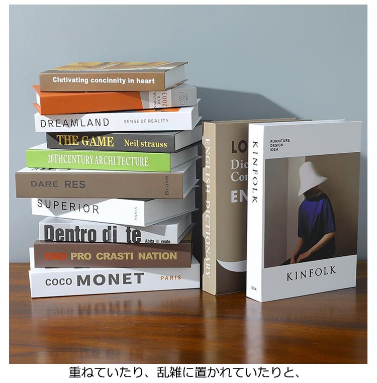 | 12冊セット 19色 インテリアや置き画などに人気のディスプレイブックです。 整然と並べられていたり、開かれたり置いたり、 重ねていたり、乱雑に置かれていたりと、 そこにあるだけでインテリアになります。 撮影小物としても必須です。 | |