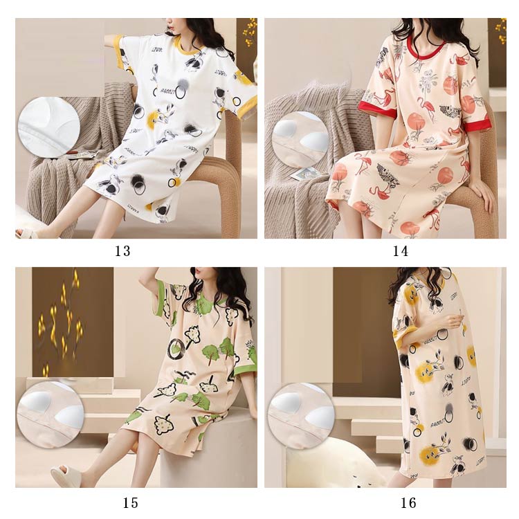 | 全20タイプ!1枚で楽ちんカップ付きワンピース サラリとした肌ざわりで、真夏でも快適! 取り外し可能なカップ付きなので、ちょっとのお出かけや急な来客時も安心です。 ルームウェアとしてはもちろん、ワンマイルウェアとしての普段使いにもおすすめです。 | |